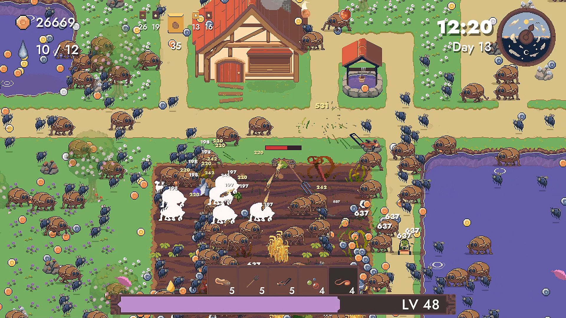 Pesticide Not Required combines auto-attacking bullet heaven roguelites with farming game mechanics to create an expansive set of strategies and build combinations. Destroy huge hordes of evil insects, grow tons of crops, create your own build path, and unlock unique characters to play with!