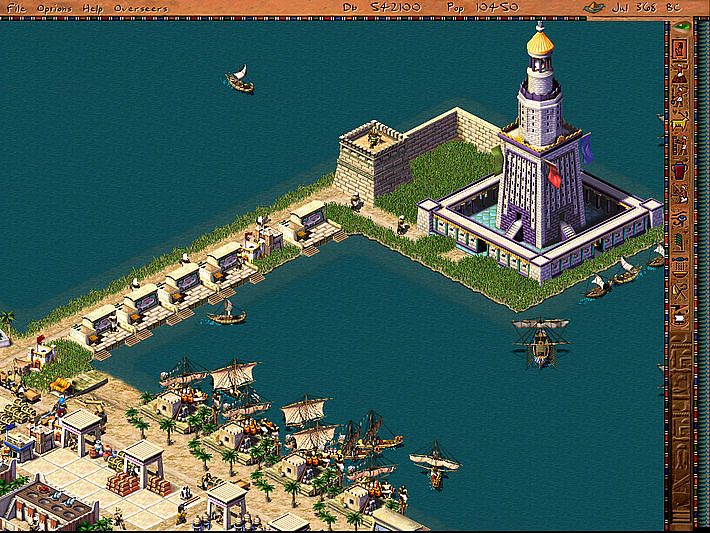 Pharaoh includes many features never before seen in a city building game, such as a farming model based on the flooding of the Nile, naval warfare, giant monuments that are assembled over time, unique dynastic progression, and variable difficulty levels. This a massively addictive, huge, but most importantly fun game that is a great choice for anyone looking for a solid city builder title, or an intellectual challenge.