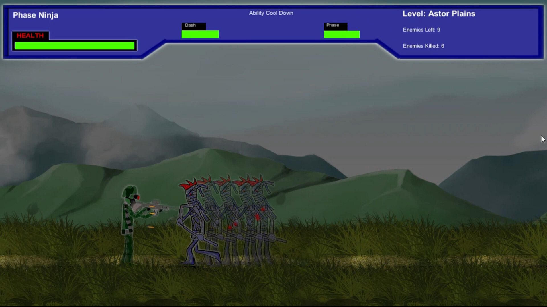 Innocent people in nearby residential areas are being overrun by hostile enemy forces. It is up to you to play as the Phase Ninja and help him eliminate all of the enemies invading the residential areas. Once the areas are cleared it is up to you to find the origin of these attacks and put a stop to them.