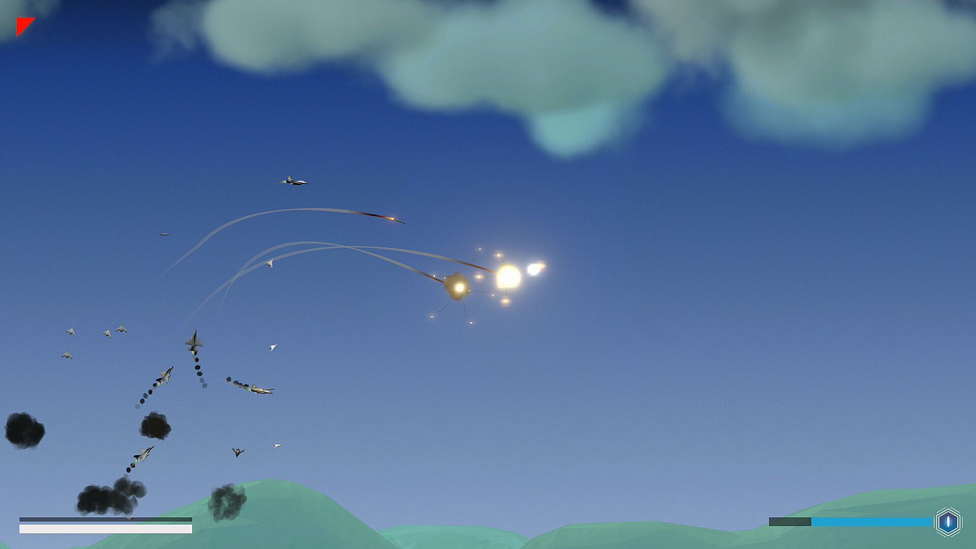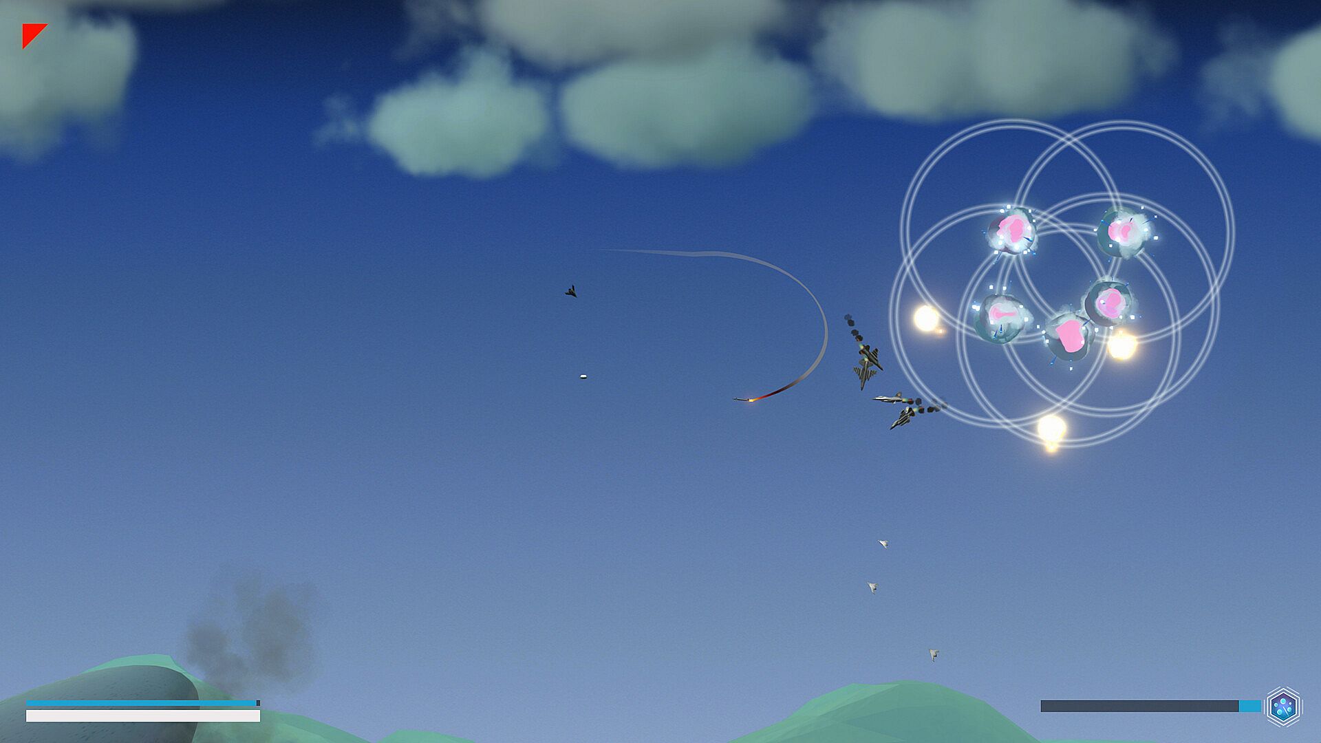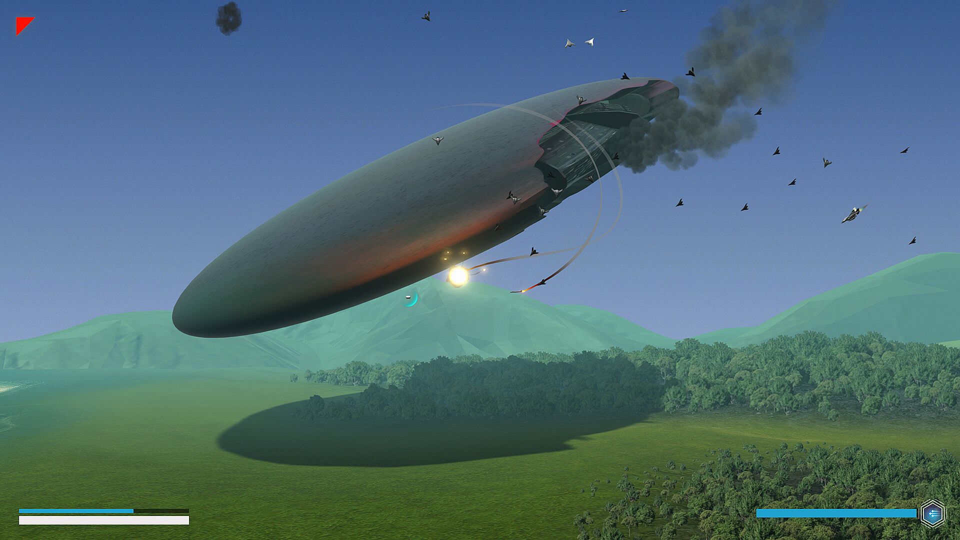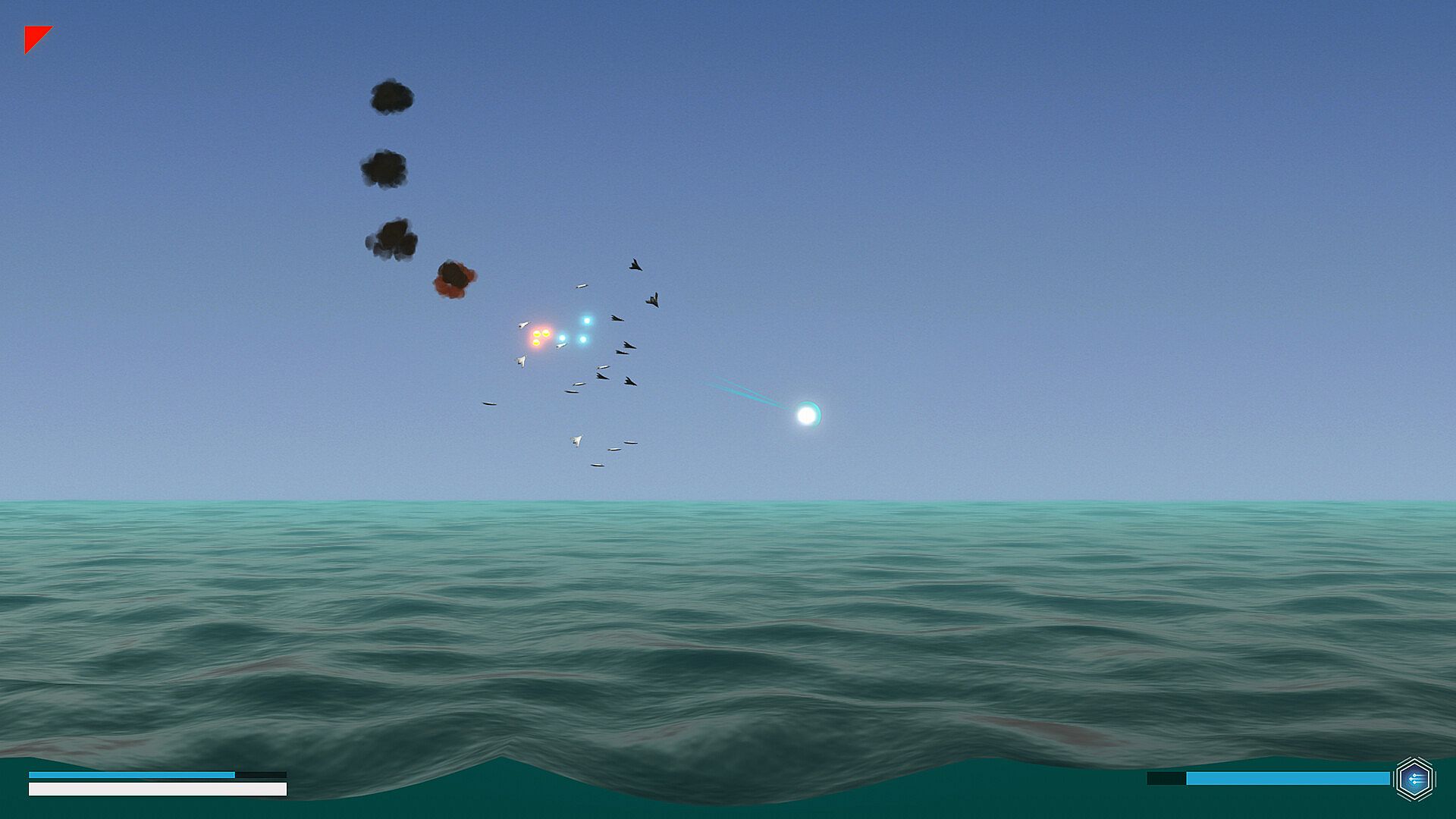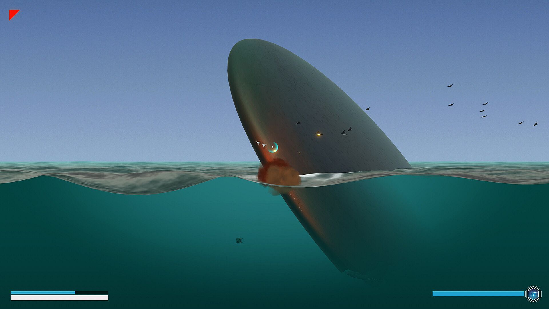 The game is a physics based shoot 'em up. Interact with squadrons and entire fleets in a story driven world. This single player narrative focuses on action rich, rouge-like, trans-medium combat. Be it air, water, or vacuum. The medium you steer your unexplained vehicle through will determine your capabilities. And the ones of your enemies.