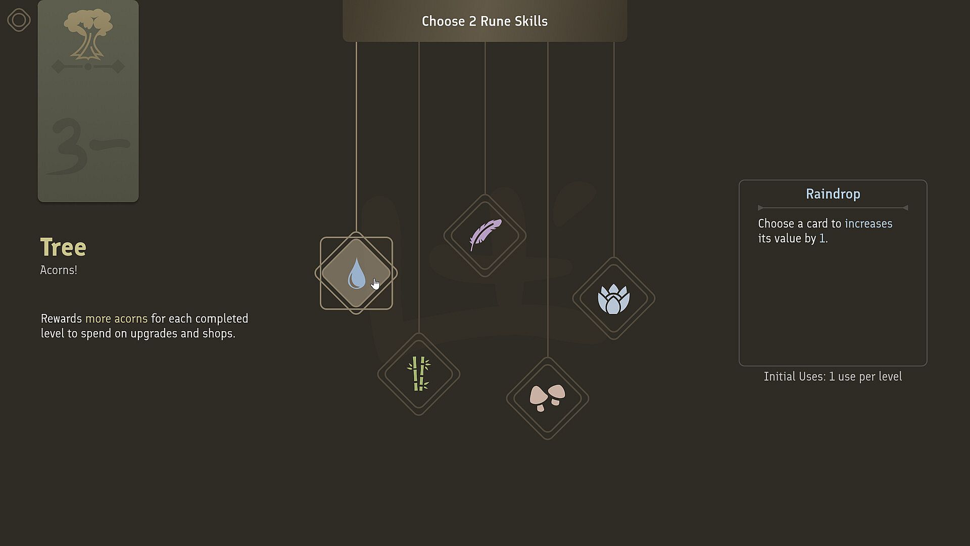 Choose one of the 6 distinct Runes as the core of your build: will you pick the Wind Rune for generous rewards through quick decisions? Or the Tree Rune for a slow-and-steady, cumulative strategy?