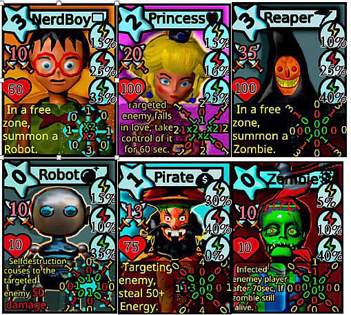 These characters are different in movement, attack power, health, special abilities, movement range, attack range and special ability range, and they are also different in battery consuming for movement, attack, and abilities. So you have to choose your team of characters depending on your playing strategy. You must protect your Philosopher's Stone and destroy the opposing team's Philosopher's Stone to win the game.