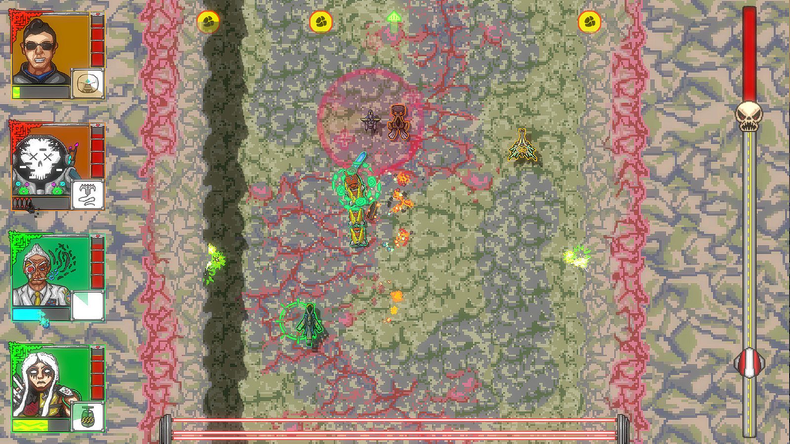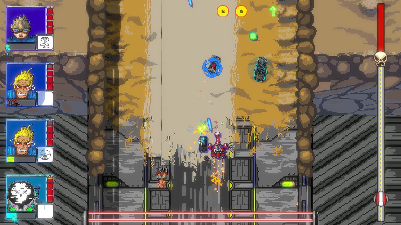 Photo Finish is a top-down local co-op vehicle brawler set in a post-apocalyptic world where up to 4 racers battle it out on deadly roads for fame and glory. Use powerful weaponry to decimate your foes, and turn their vehicles back into salvaged scrap metal. But be mindful of the great harvester, a deadly monstrosity that attempts to crush all who dare to race on the slopes of this desolate wasteland!
