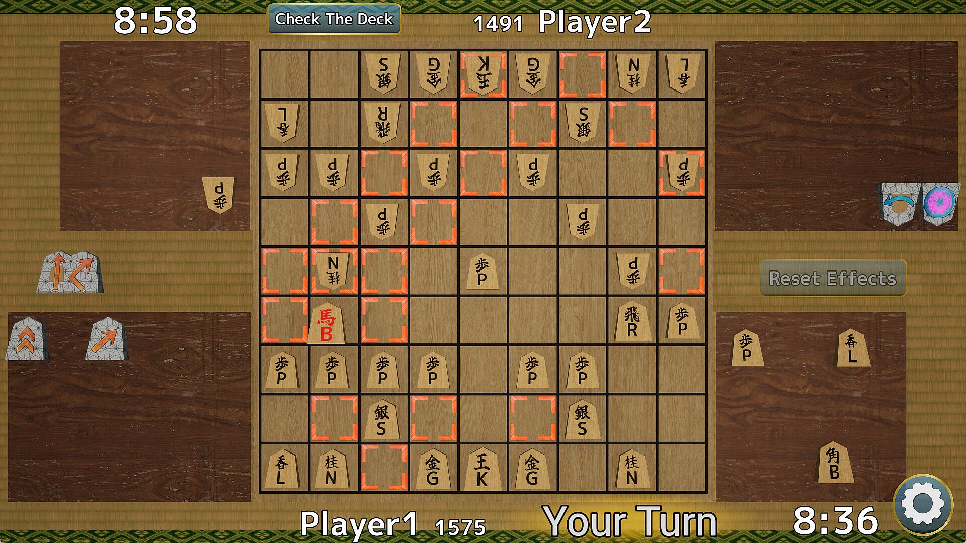 ・Reflect (the path of the piece is reflected by the edge of the board)