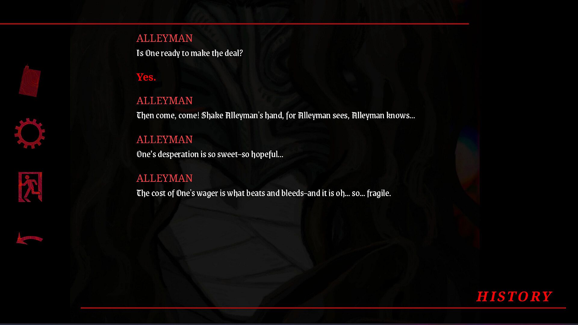 In a final bid to cheat death, you challenge The Alleyman to a high-stakes dice game where every roll could be your last.