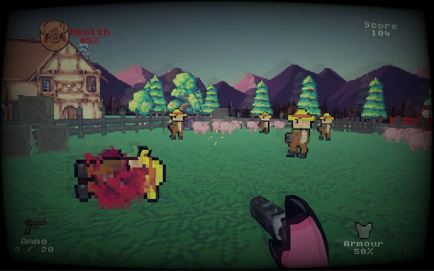 This is the scoop on PIGNATOR, an action-packed First Person game, with a visual style that places us before a game that is inspired by the aesthetics and gameplay of old FPS games.