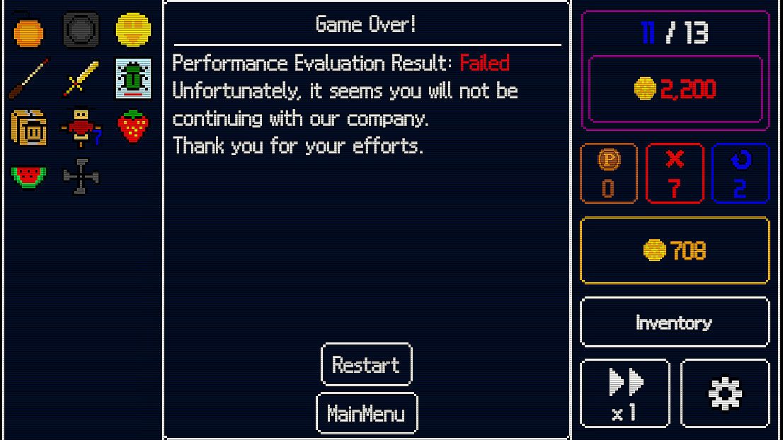 After a set number of launches, submit your coins—fail to meet the target, and you’ll be fired.