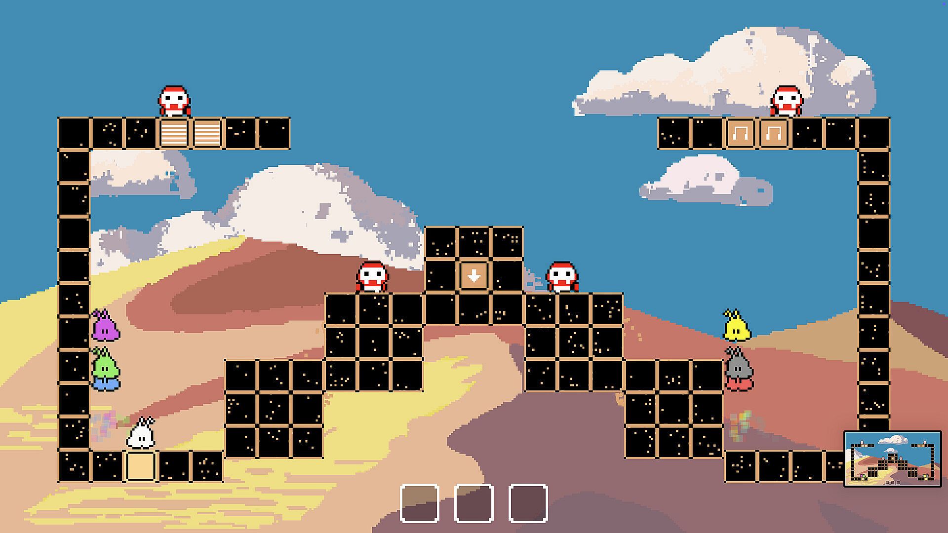 PiPu Party is a party game where you control the level itself. The goal is simple: get the note to the staff. But with a shared backpack of powerful symbols, every round is a fight for control.