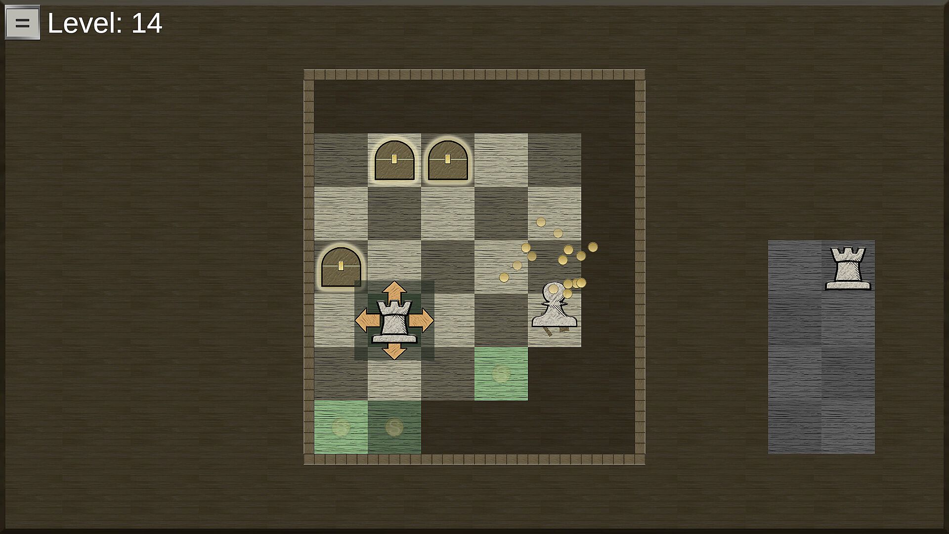 Play through 54 levels while strategically placing and directing chess pieces to break open all present treasure chests on a given chess board.