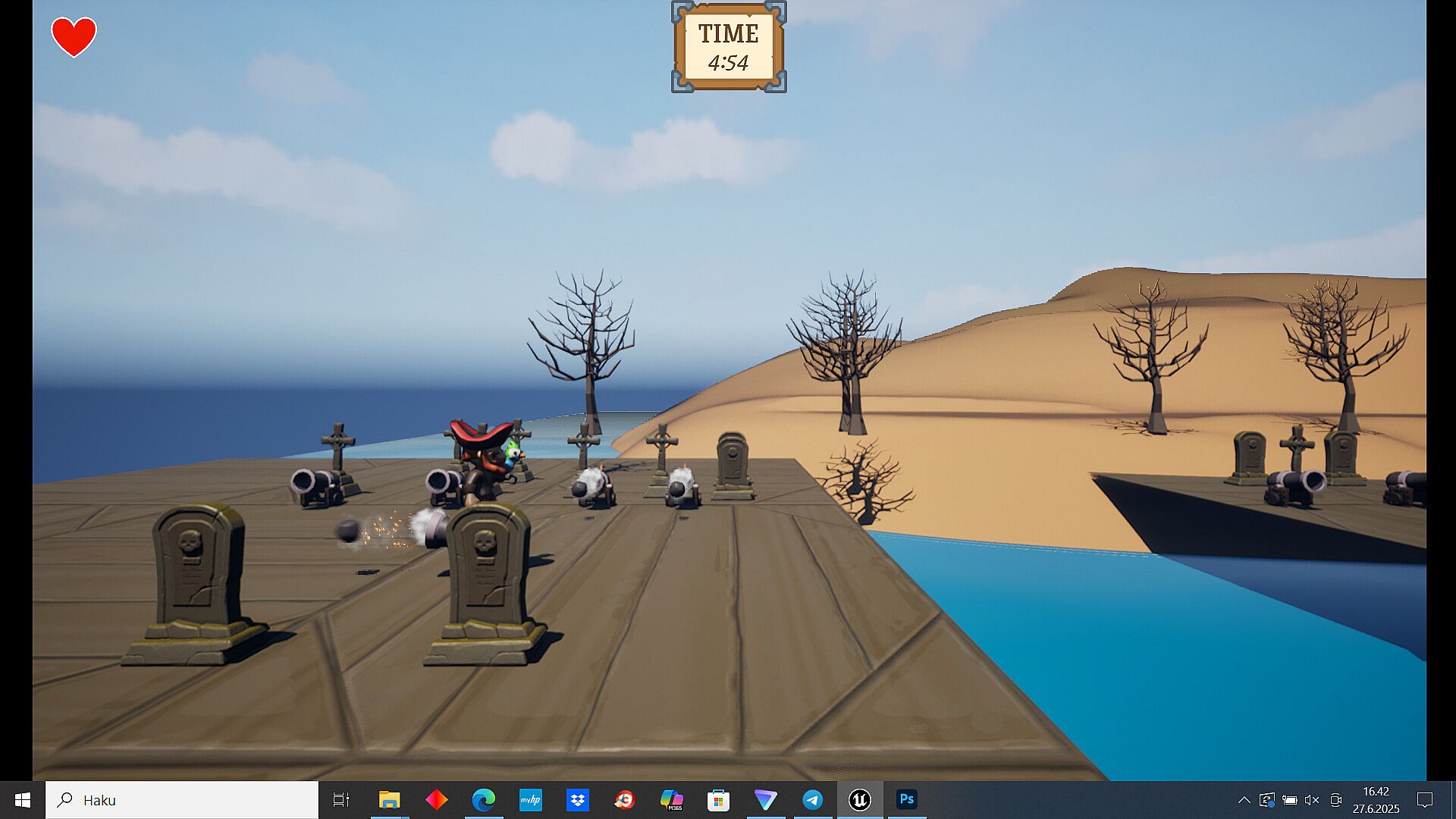 Player controls Pirate guy whose mission is to finish levels and find treasure. Finding treasure will finish levels and gives player steam achievements. Pirate guy need avoid shooting cannons and several different enemies. There is skeleton and mini shark enemies. Those can be killed by jumping on top of their heads. Then there are greenlight immortal skeleton which need avoid. Player cant kill that enemy. During levels player can collect health pickups and green diamonds which gives player immortality for short period. Some levels contain also moving platforms and every level there is limited time to finish level so you need also be fast and avoid same time enemies and traps