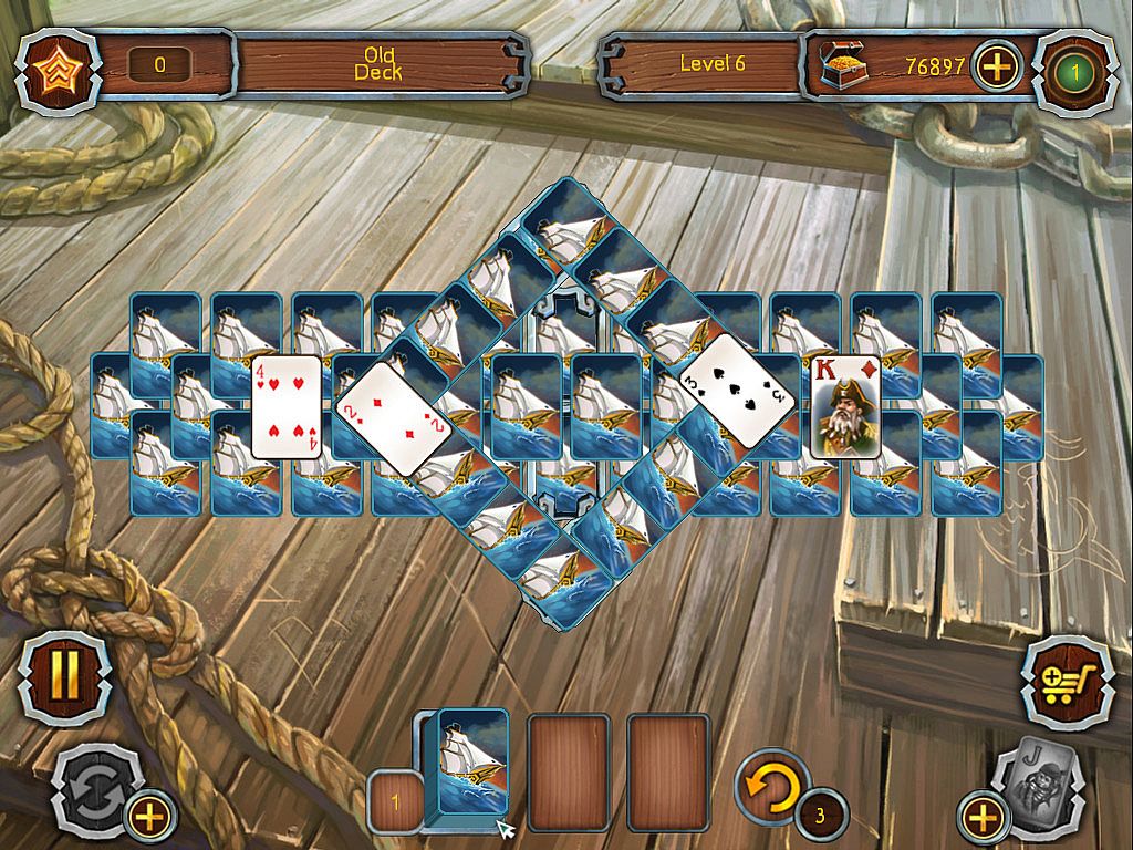 Find gold cards in each of 120 games of solitaire, get real pirate trophies and enjoy entertaining gameplay! Use a multitude of bonuses, hints and helpful tools. Choose your difficulty and play in comfort. Premium graphics and more than 10 hours of gameplay to jolly pirate melodies!