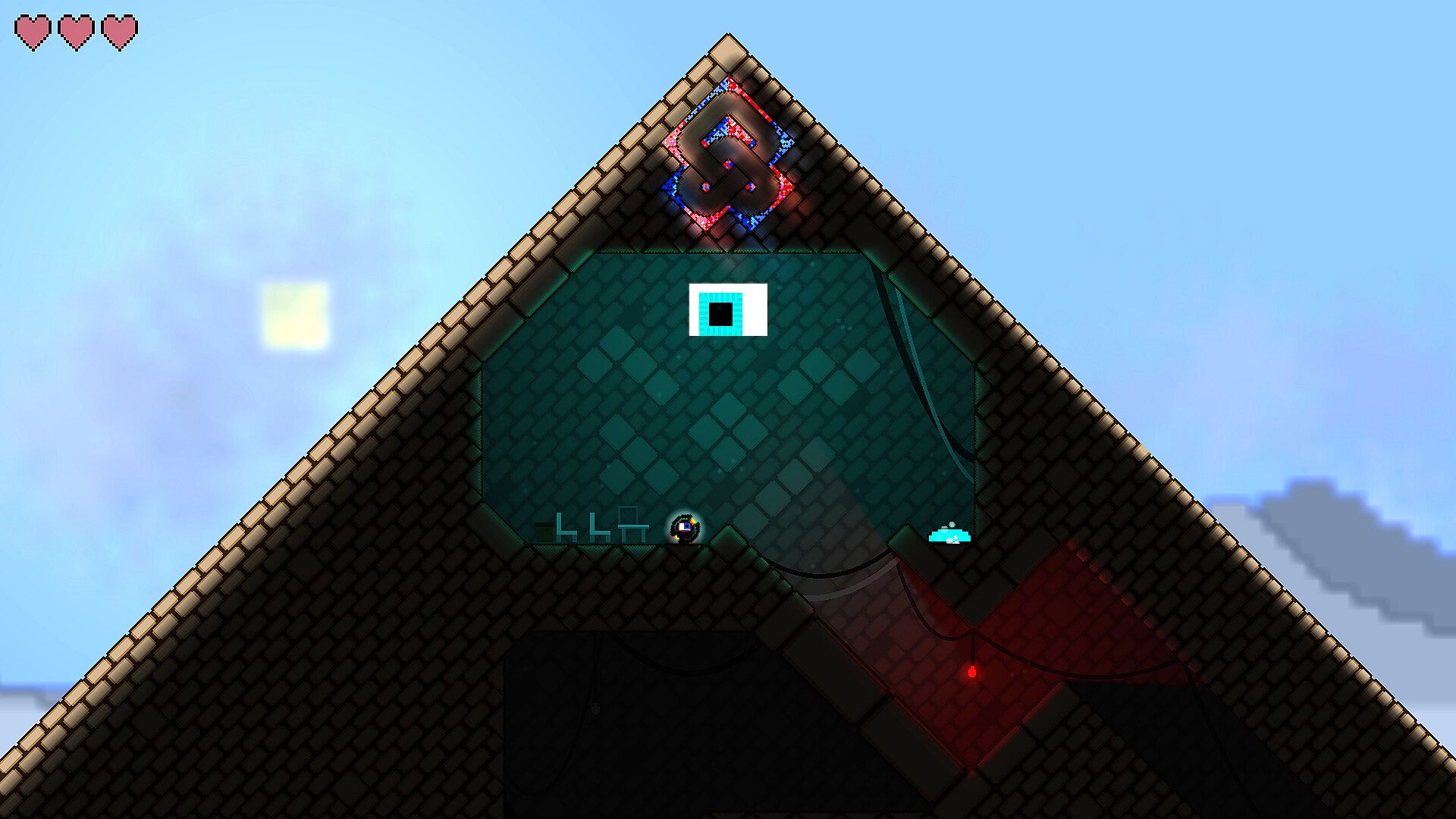 Retro inspired pixel art is elevated with dynamic lights and shadows to create a unique visual style. Procedural algorithms give an organic feel to the environment.
