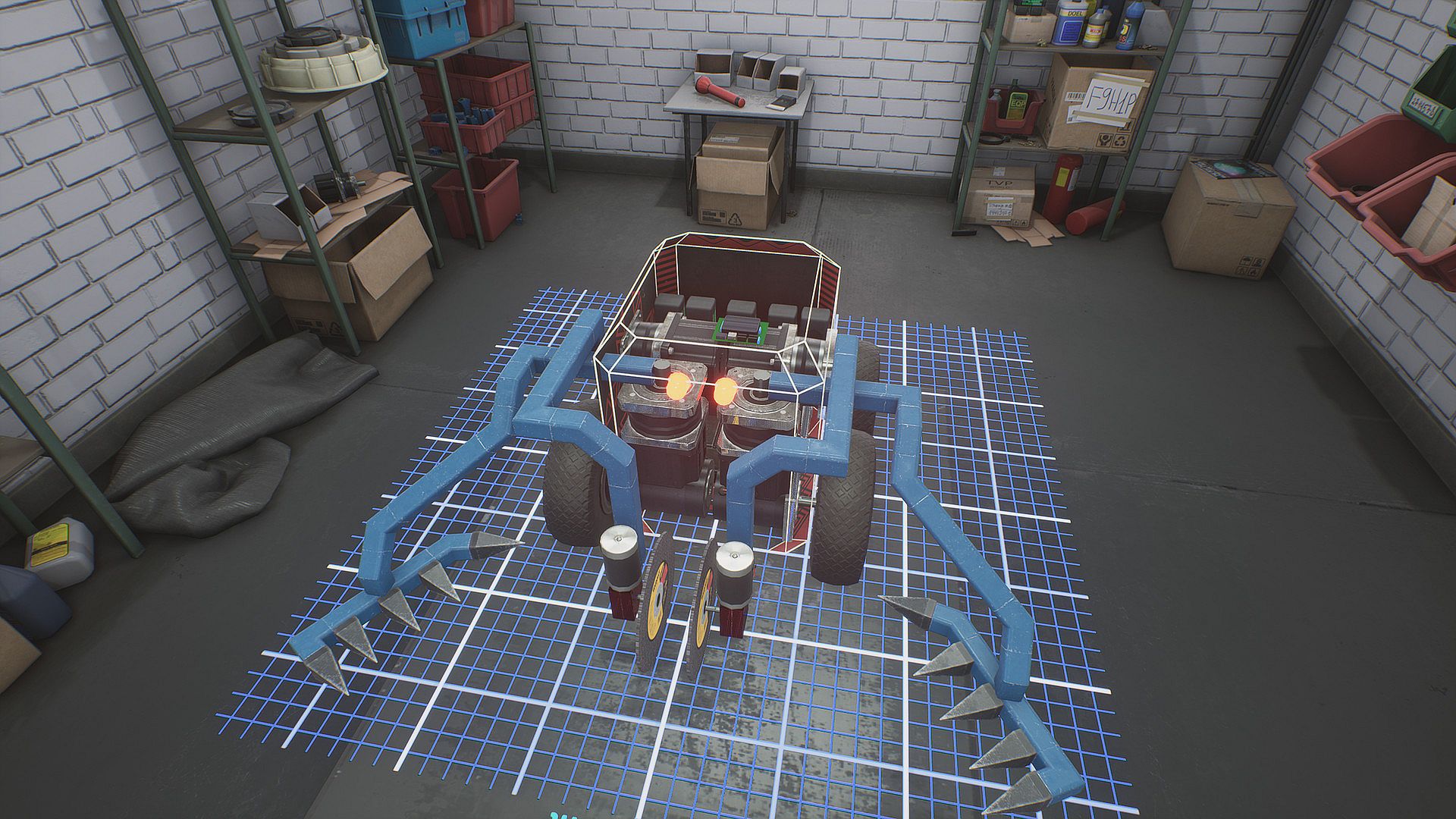 • Component placement is next step. Part types are, but not limited to: structural beams, motors, pistons, wheels, blunt, sharp & other weapons, energy supplies, main-board and cosmetic parts.