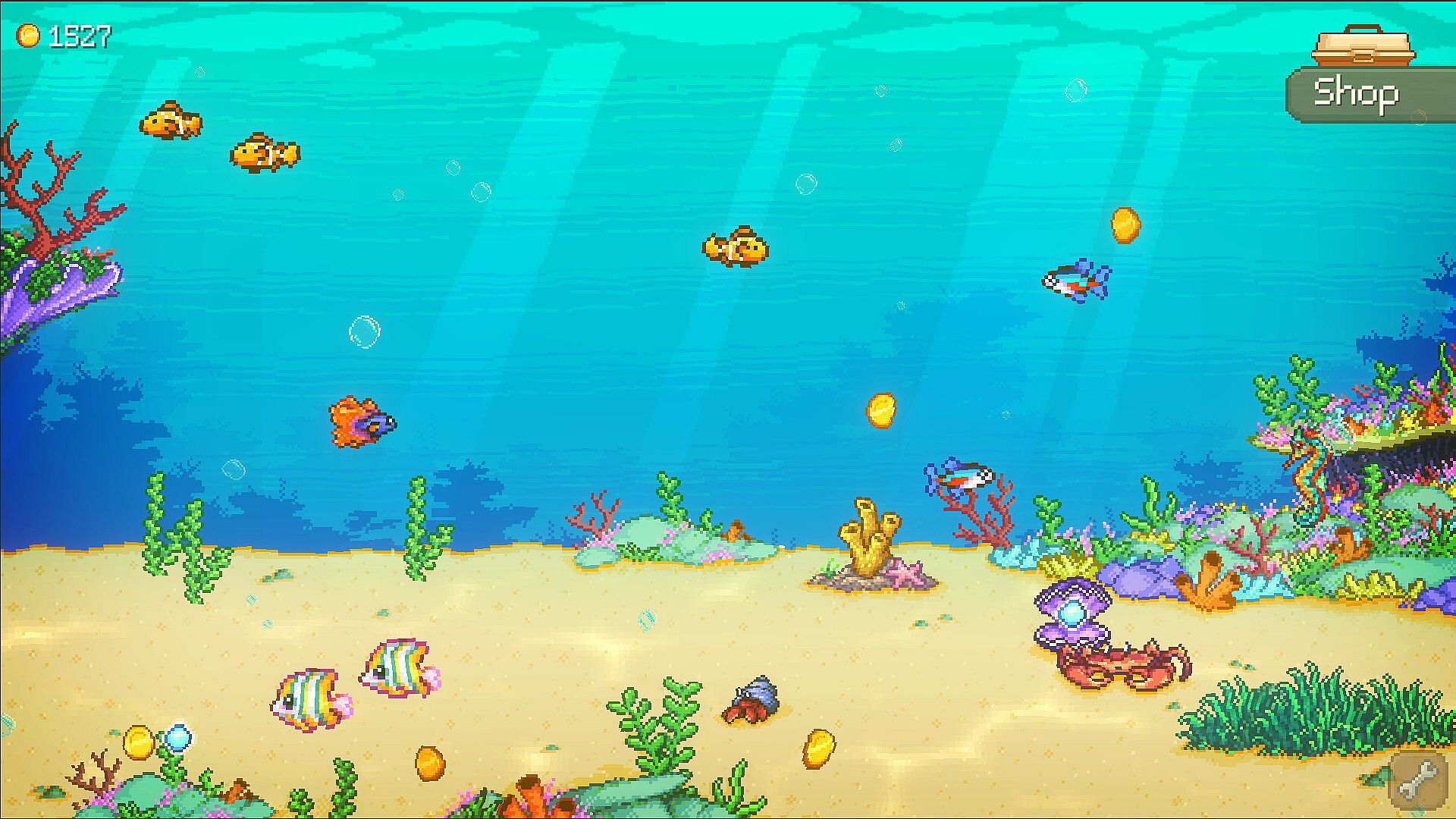 - Collect and take care of charming pixel-art fish and keep them happy, they'll reward you if you do!