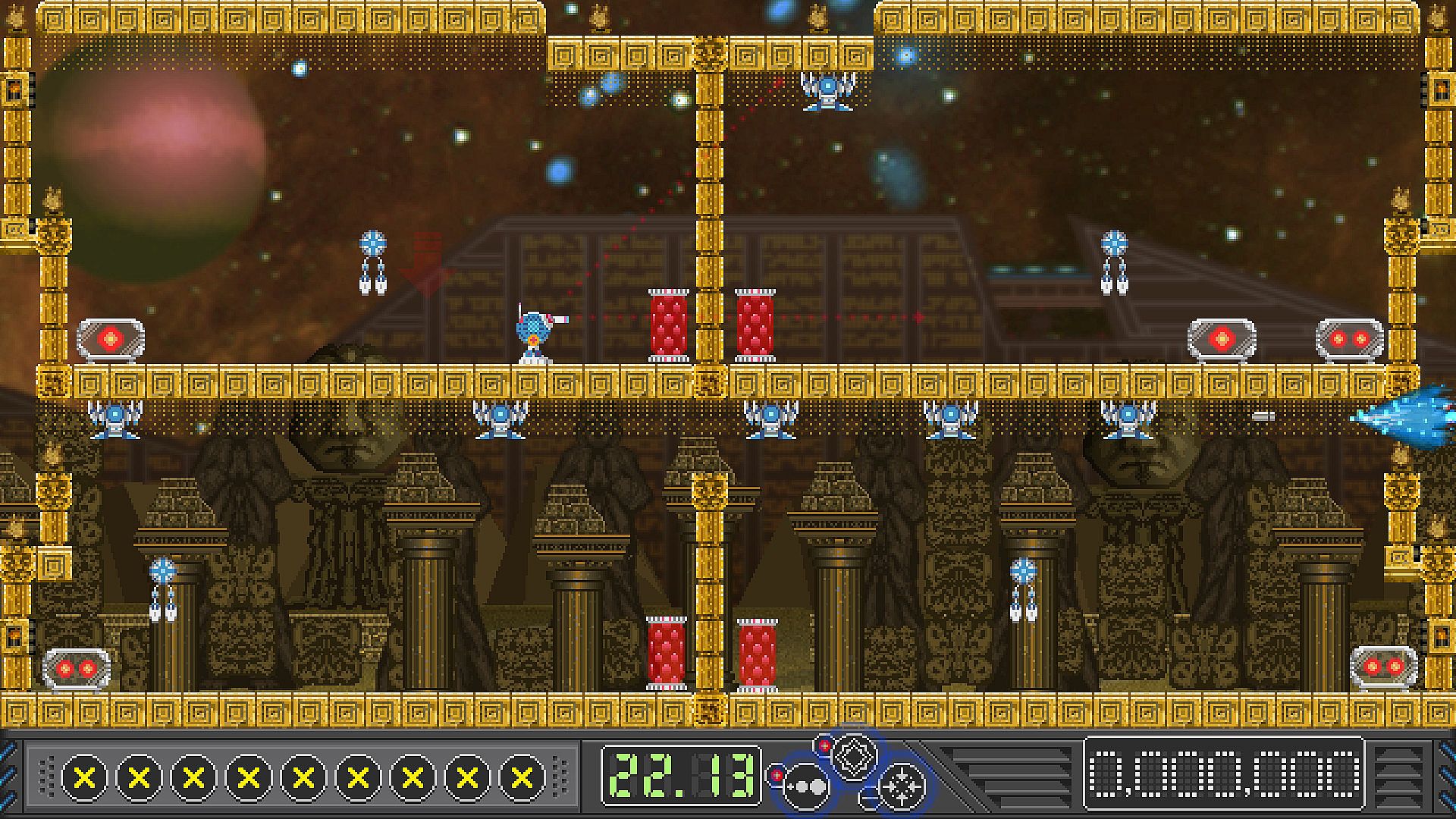 Dangerous traps such as warp devices, meteorites, spinning lasers, moving floors, and more will torment you.