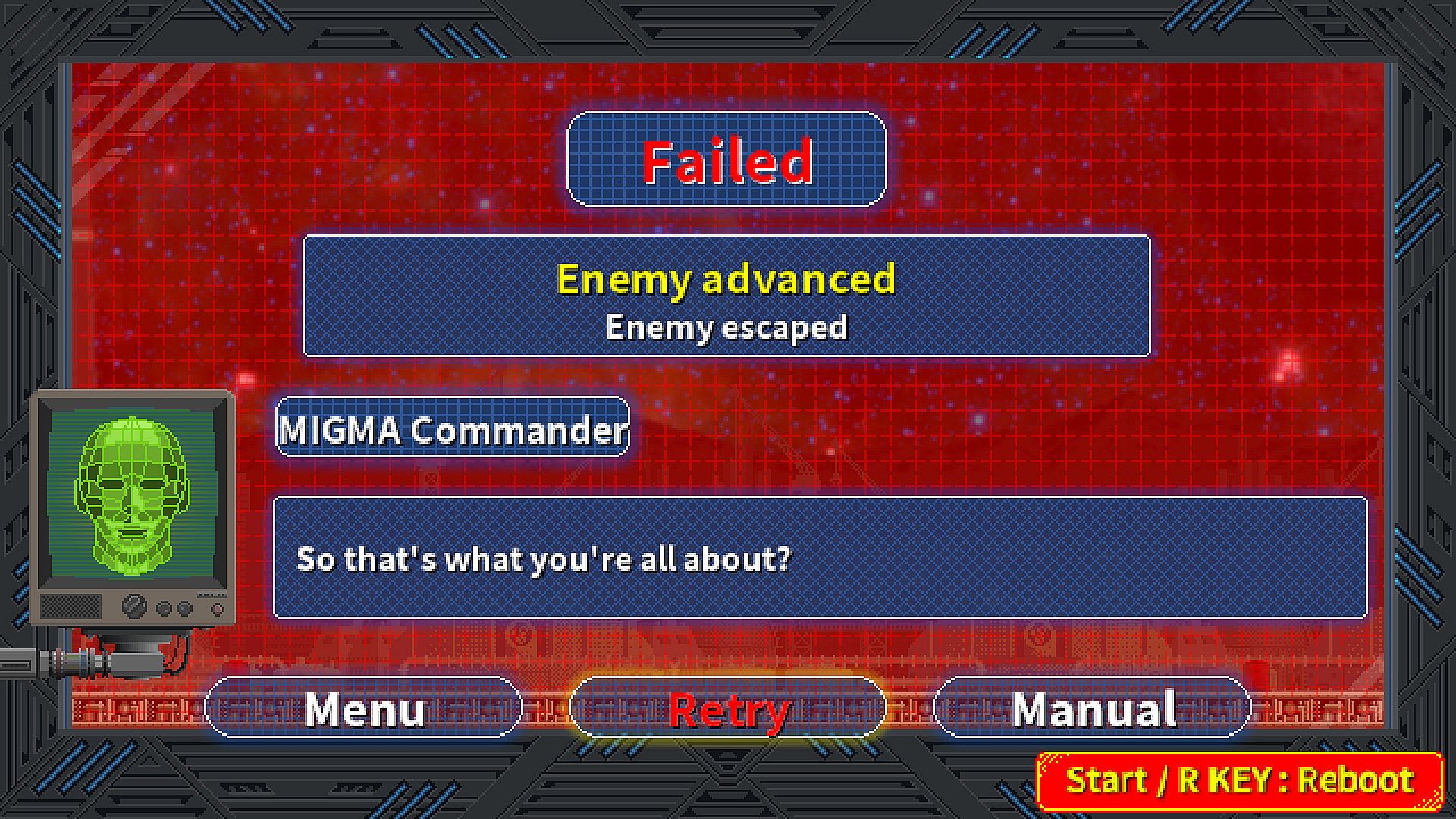But don’t worry! Retry immediately simply by pressing the start button (keyboard: R).