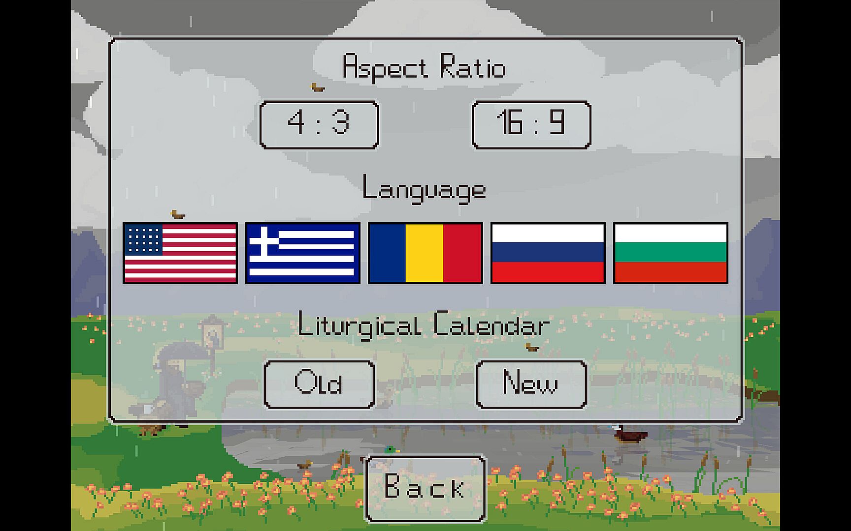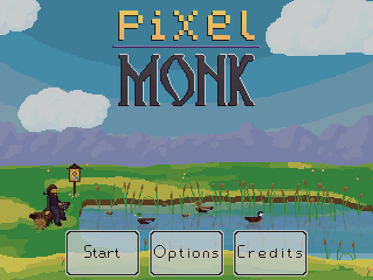 Pixel Monk is a casual game about acquiring a peaceful spirit: an experience players can enjoy through interactive background elements and ambient sounds. The game features two leisurely actions: Pray, and Feed the Ducks, both of which interact with the environment in different ways. Players can also mix a variety of calming sounds, toggle daytime and weather, and cycle through inspirational quotes from the Bible and Orthodox Saints.