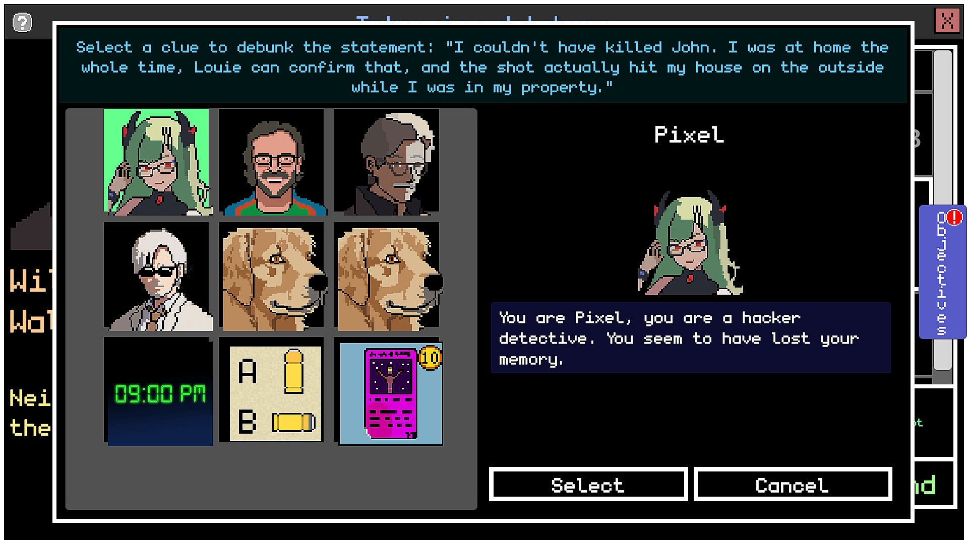 You are Pixel P.I., a hacker detective who has to solve old cases to find clues about her own past.