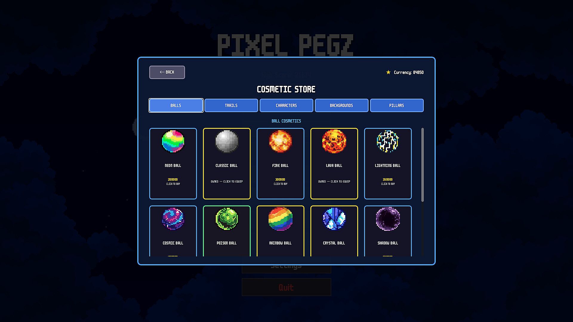 • Cosmetic Customization: Personalize your experience with unlockable backgrounds, balls, and pillars that you purchase with score you earn.
