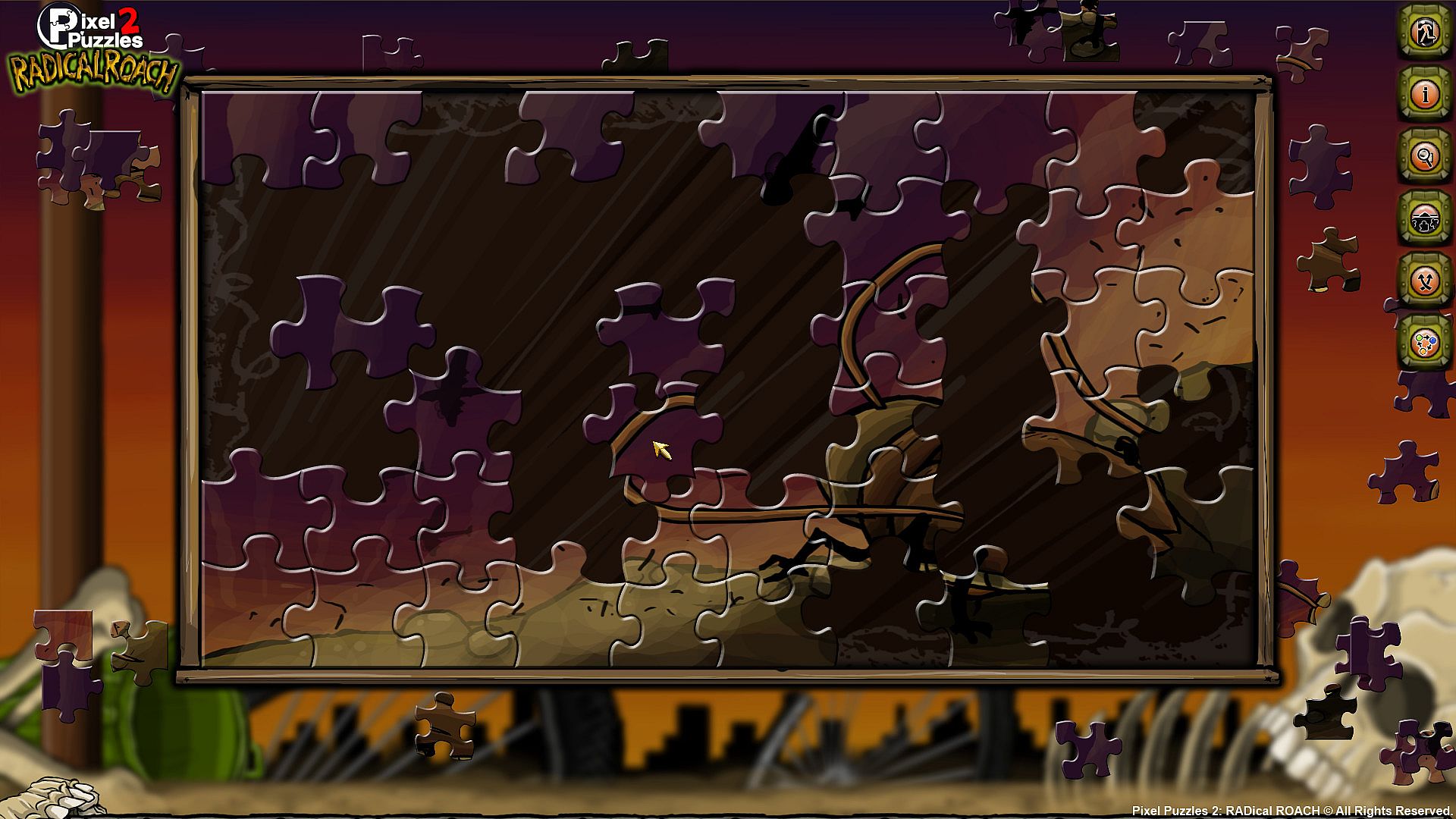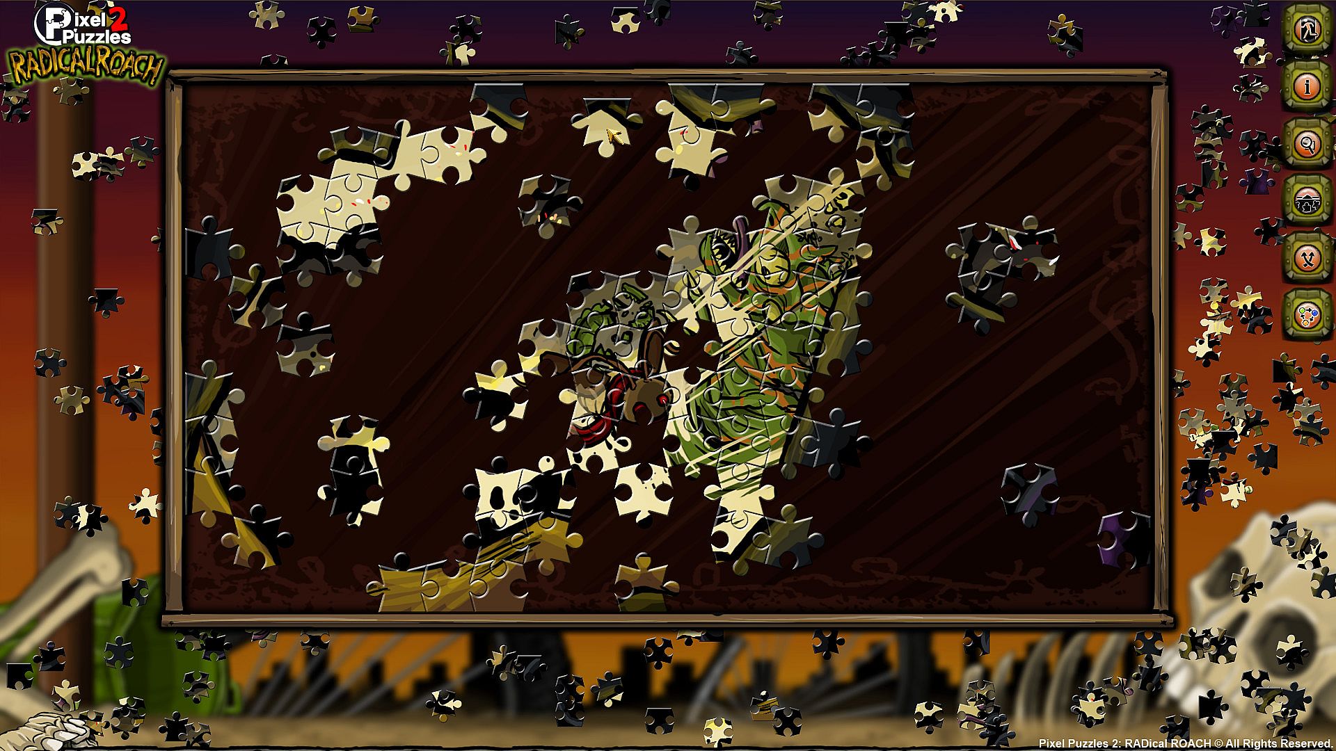 Pixel Puzzles 2: RADical ROACH is a traditional style jigsaw puzzle game with each puzzle piece uniquely shaped in a way no physical puzzle could be.