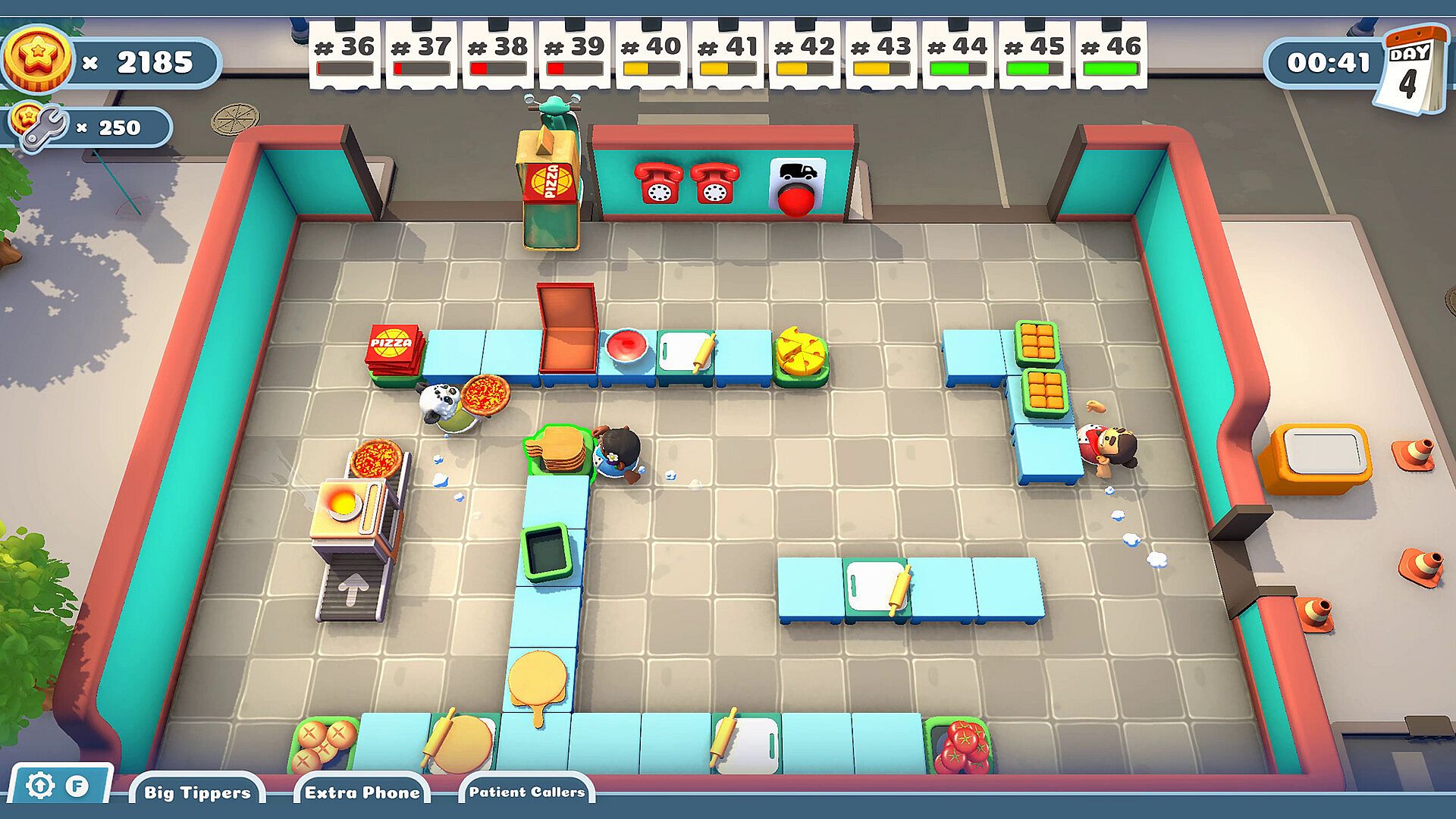 If you want to stay in business, you need to be continuously improving! Use your earnings to buy upgrades and improvements to make more, faster and better pizzas. You might even be able to make your customers more patient!
