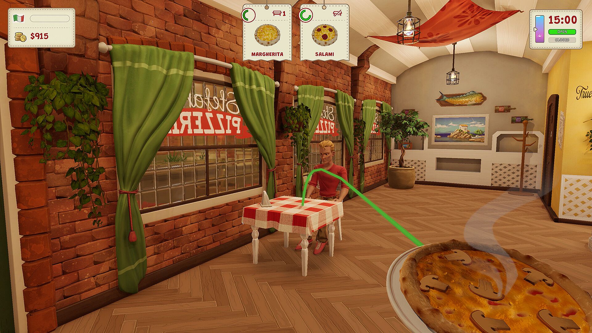 Good-hearted grandpa, Stefano has given you no easy task! Get your establishment up and running, then learn the secrets of running an Italian pizzeria. Keep your customers happy, don't be surprised by a mysterious reviewer, and above all, don't let mediocre chains take your place in the market. Everyone knows very well that quality, not quantity, counts!