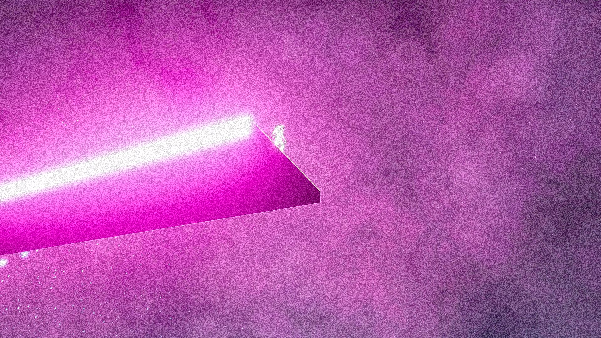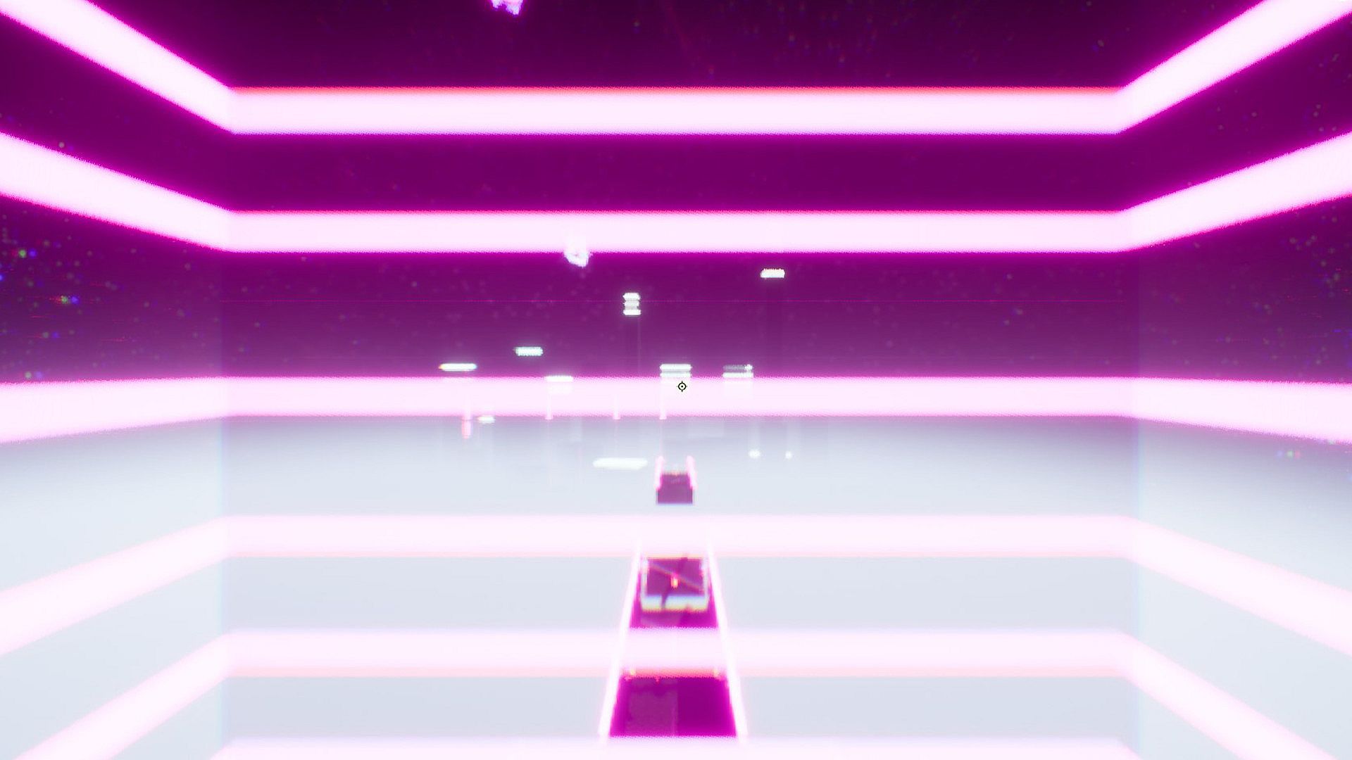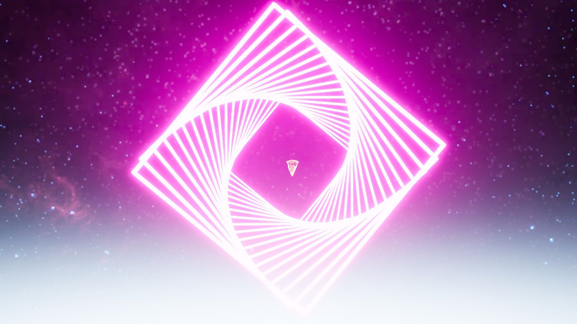 You’re a parkouring astronaut in a retro-neon dreamlike world hurling trough the vastness of space in order to get the last slice of pizza.