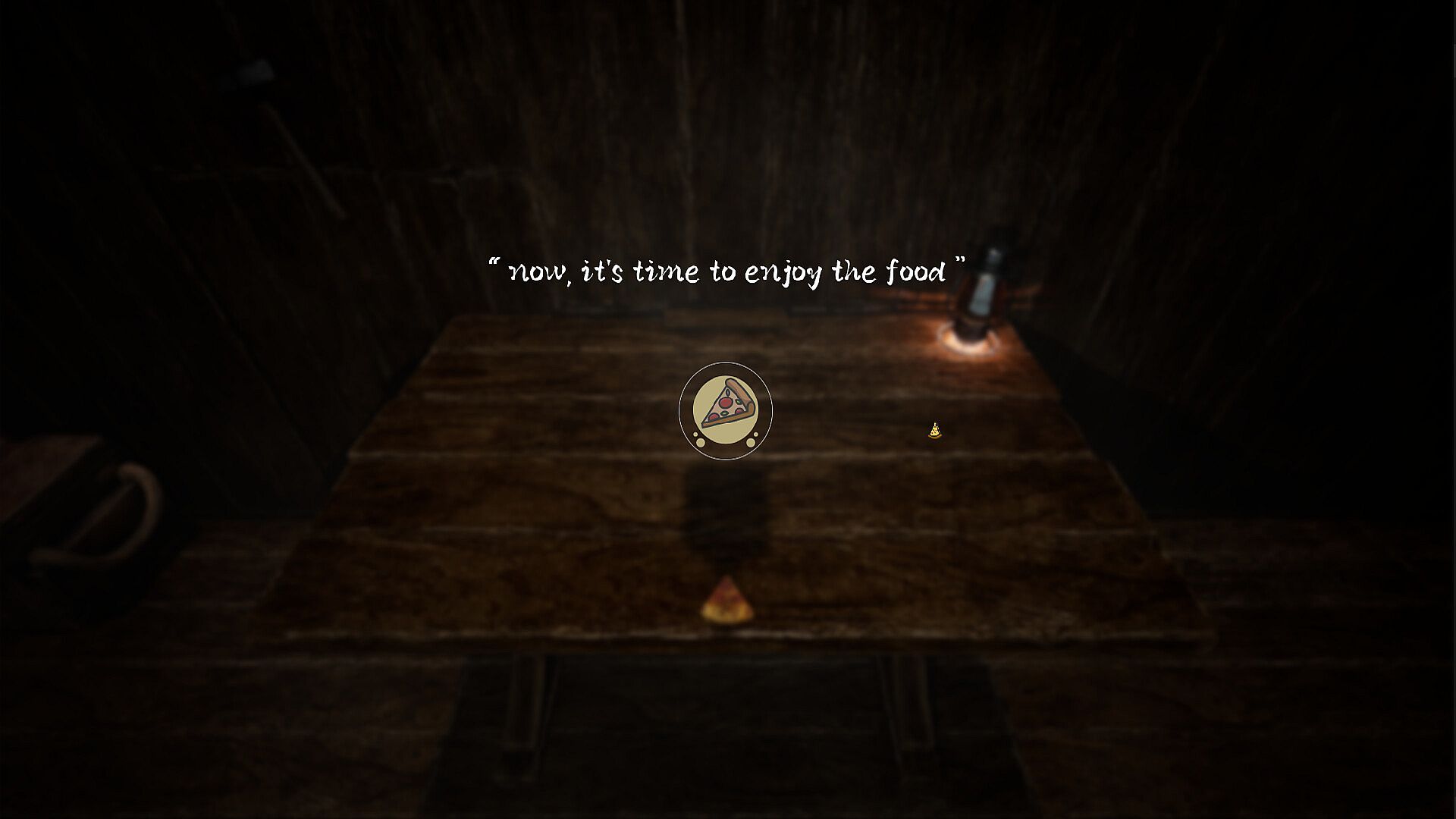 3D fixed view points mini-game, there is only one level, you need to see the right time to press the spacebar to destroy the cockroach to protect the last piece of pizza, when the cockroach approaches the pizza game will fail.