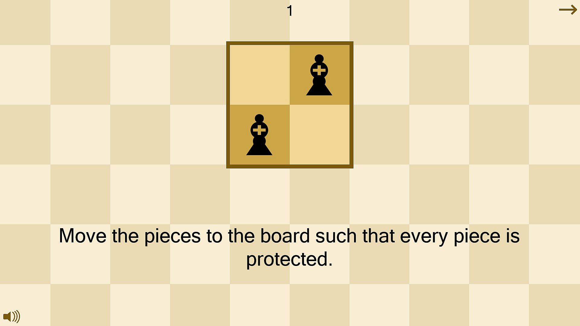 The goal of the game is to place the chess pieces on the board such that every piece is protected exactly once.