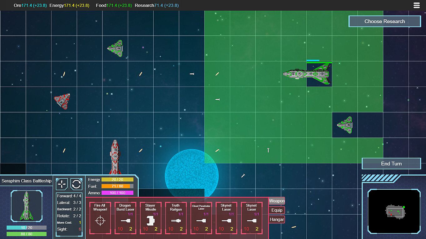 - Both movement and attack require energy. Each ship has an energy storage limit.