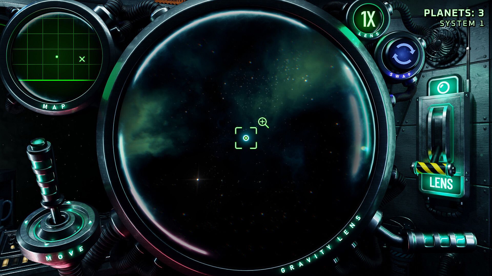 Discover strange planets using an experimental gravity-powered telescope. It's your mission to photograph planets and assemble a photo gallery. Be careful, the telescope's gravity element pulls in dangerous debris! Defend your ship using powerful devices to push away debris. Develop a balance between using the telescope and protecting your ship.