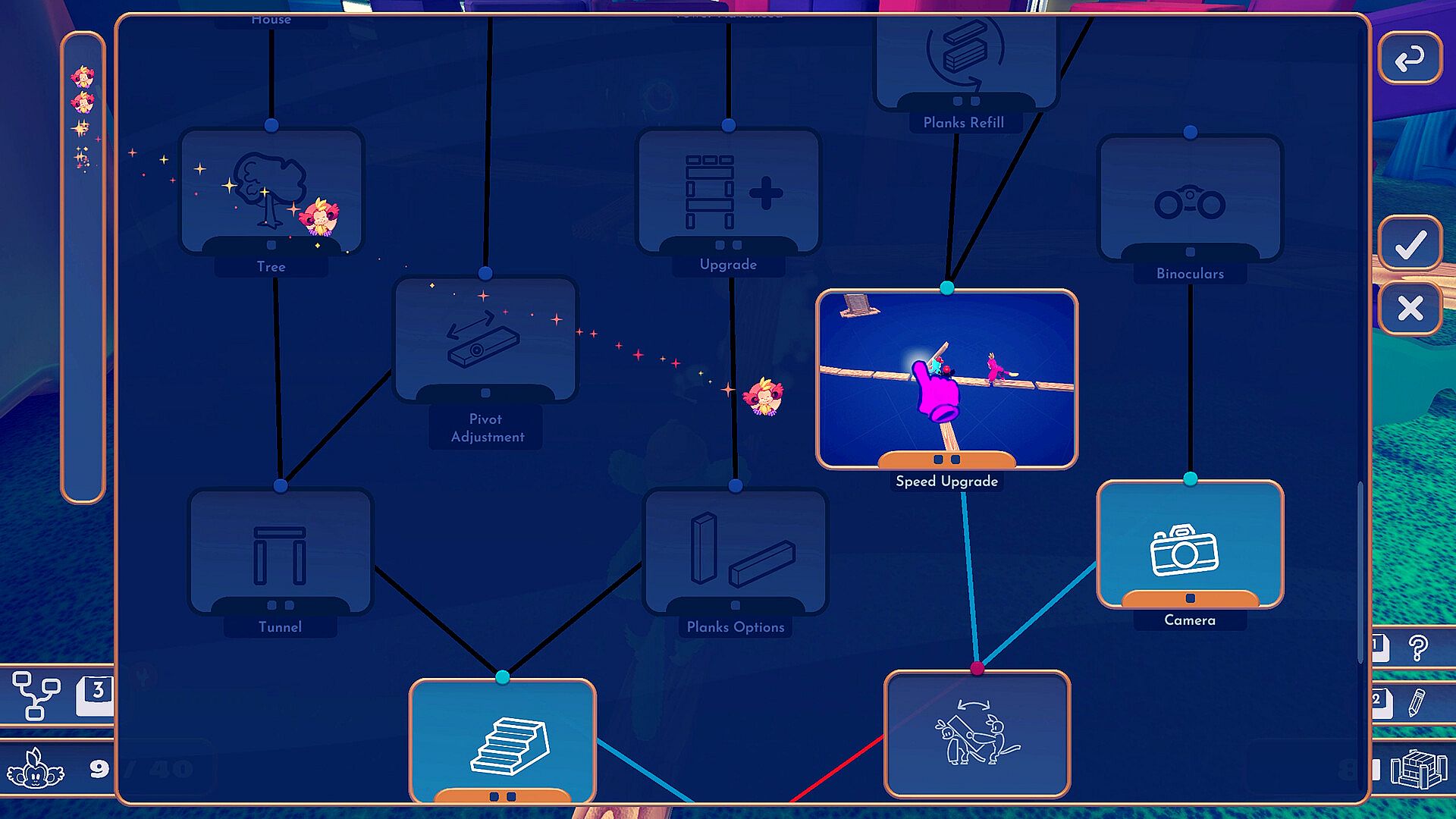 For each monkey you awaken, you gain a valuable skill point. With these points you can unlock a wide range of new blueprints, upgrades and building techniques. Unlock the air balloon and float comfortably through the sky. From above, can you possibly discover more hidden plush monkeys?