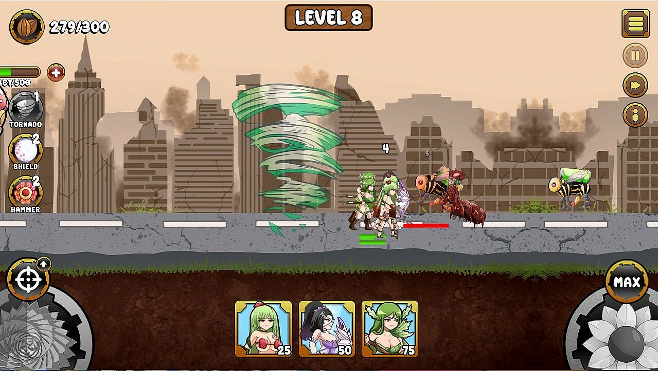 Plant Girls: Insect Invasion is a strategic tower defense game in which you summon Plant Girls to prevent Cyborg Insects from attacking your base.