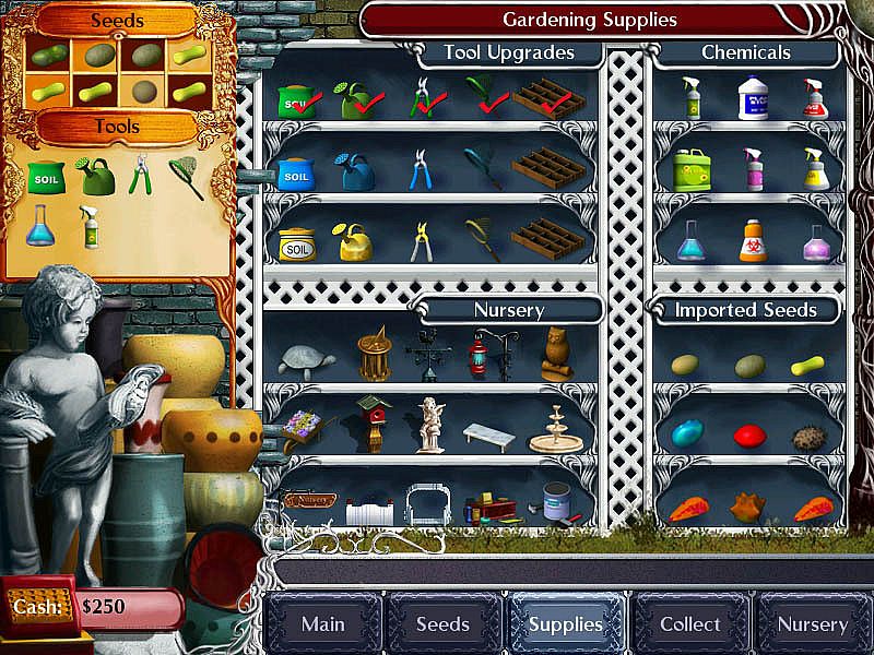 Plant Tycoon is a gardening sim game where you nurture plants and experiment with increasingly rare and valuable species. The object is to breed and cross breed plants until you find the 6 Magic Plants of Isola and solve the genetic puzzle. You start with a couple of dollars, a handful of seeds, some soil and water. Grow plants, organize and harvest seeds, monitor your plants' health, age and maturity and protect your plants from dehydration and infestations. Sell some of your creations to fund your research, buy better supplies to use in your Nursery and purchase ornaments to customize your virtual garden.