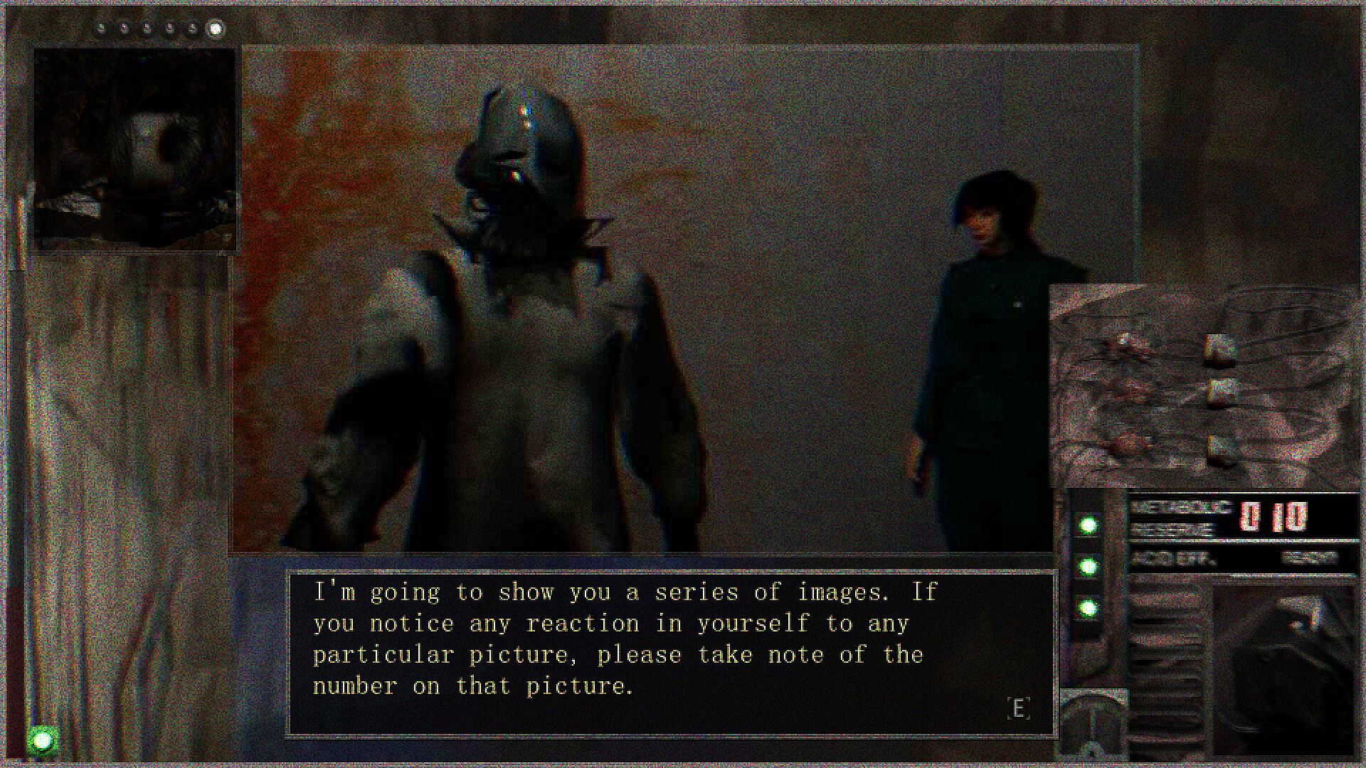You find yourself an unstuck consciousness in a dark room, your attention floating between grimy fabrications of deconstructed biologies. All around you, strange machine assisted life drips and pulses and hums. Soon, the authorities arrive and begin questioning, demanding, threatening, interrogating. But you have no memory and no alibi and no throat with which to protest. Faced with the prospect of a state-sanctioned oblivion, you must play along as best you can, explore and understand how your strange body functions, and find the narrow path between submission and defiance that just might lead to your liberation.