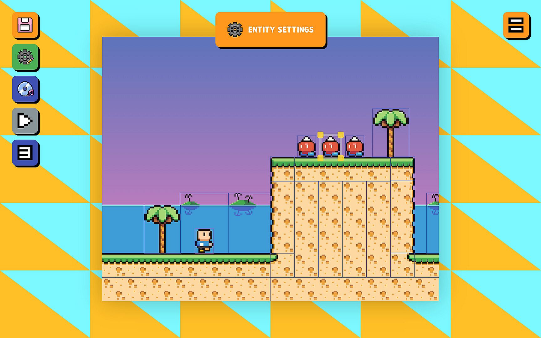Use Playgrounds’ built-in art editor to design your own characters, tiles, objects, and animations — or explore a massive library of community-made assets. Every element in your game can be customized.