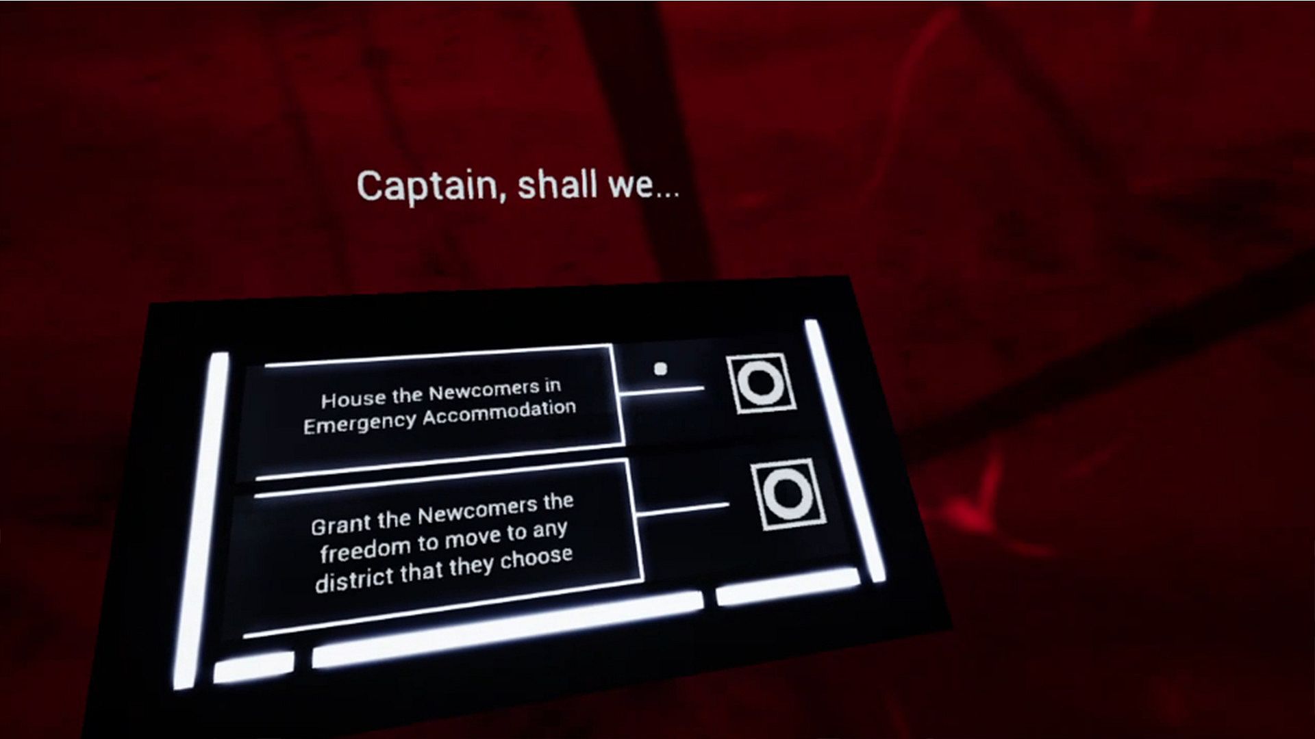 Playing God is an interactive VR thought experiment that lets you imagine you are the captain of a space station, suddenly presented with a humanitarian crisis. It challenges its audience with a series of scenarios and questions based upon the narrative allowing the audience to explore how they would deal with a humanitarian crisis themselves.