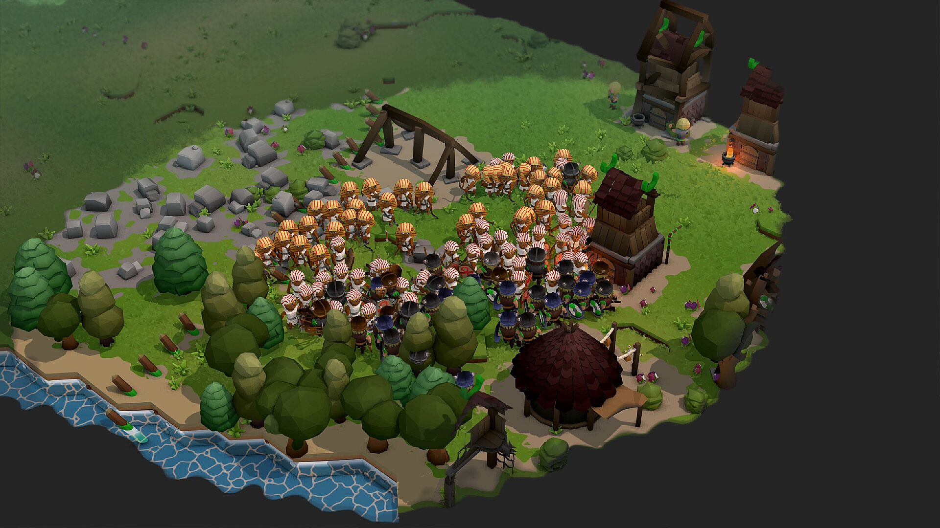 Each building has a unique purpose, be it harvesting natural resources, growing food, expanding your town, refining metals, training soldiers, or expanding your population. As you grow and upgrade your town, new buildings will become available enabling better tools or stronger soldiers.