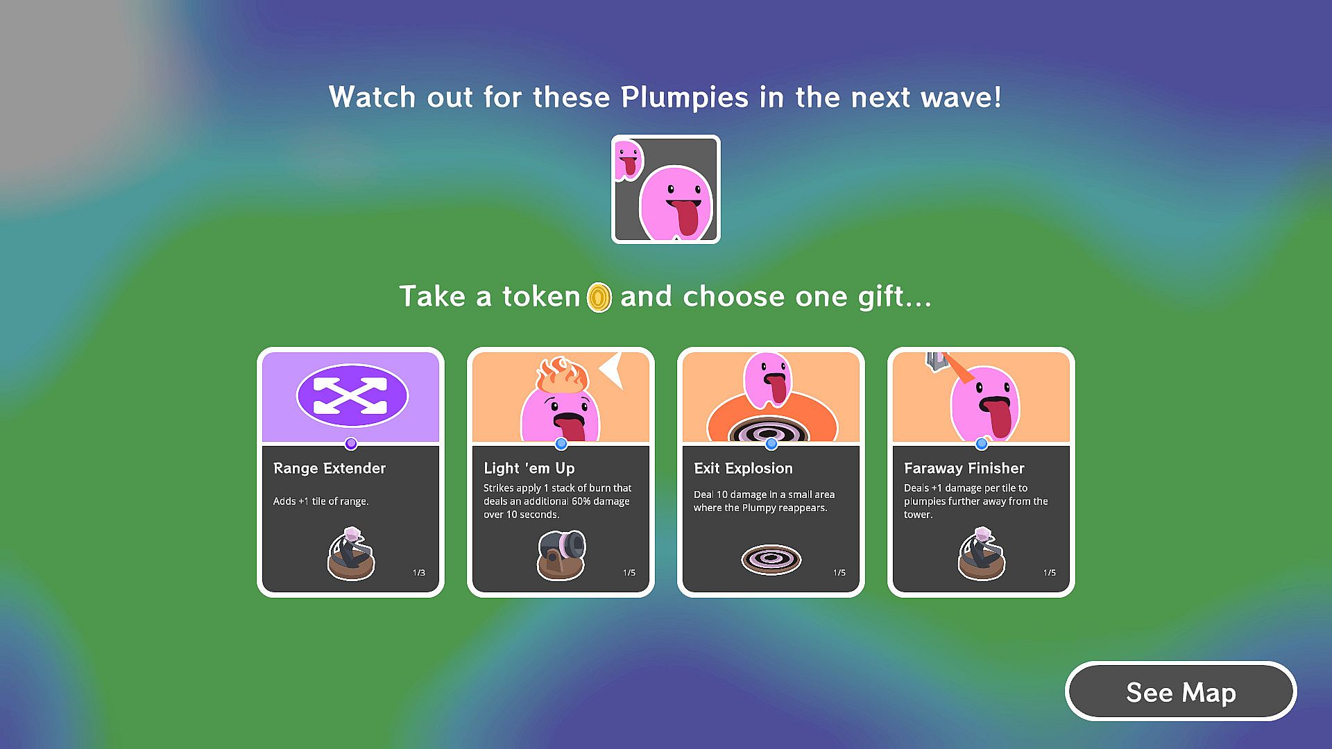 Choose which unique elder you will use to stop the Plumpies! Each elder has unique skills, a special tower, and passive bonuses that will change the way you play and the strategies you use to win.