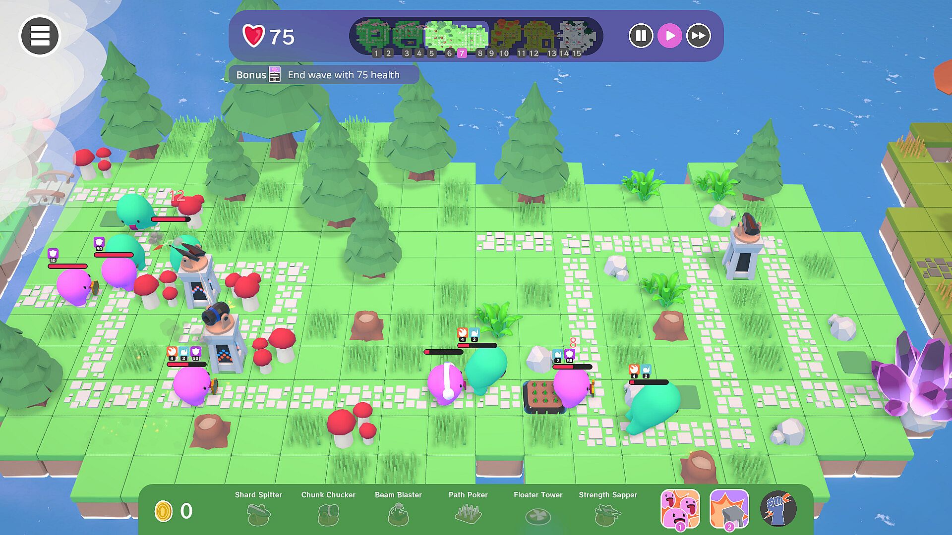 Choose an elder to lead the charge against waves of Plumpies in this casual strategy game on PC. Each elder brings distinct skills, a signature tower, and passive effects that reshape your approach to every match. Pick from randomized tower upgrades per wave, snag an extra one by tackling a challenge, and weigh risks to build the right defenses. The map shifts periodically, wiping out towers in outdated sections and forcing smart placement with your finite tokens. Uniquely designed enemies demand fresh tactics each time. New players to escalating challenges and strategic depth will keep pushing through unlocked difficulties.