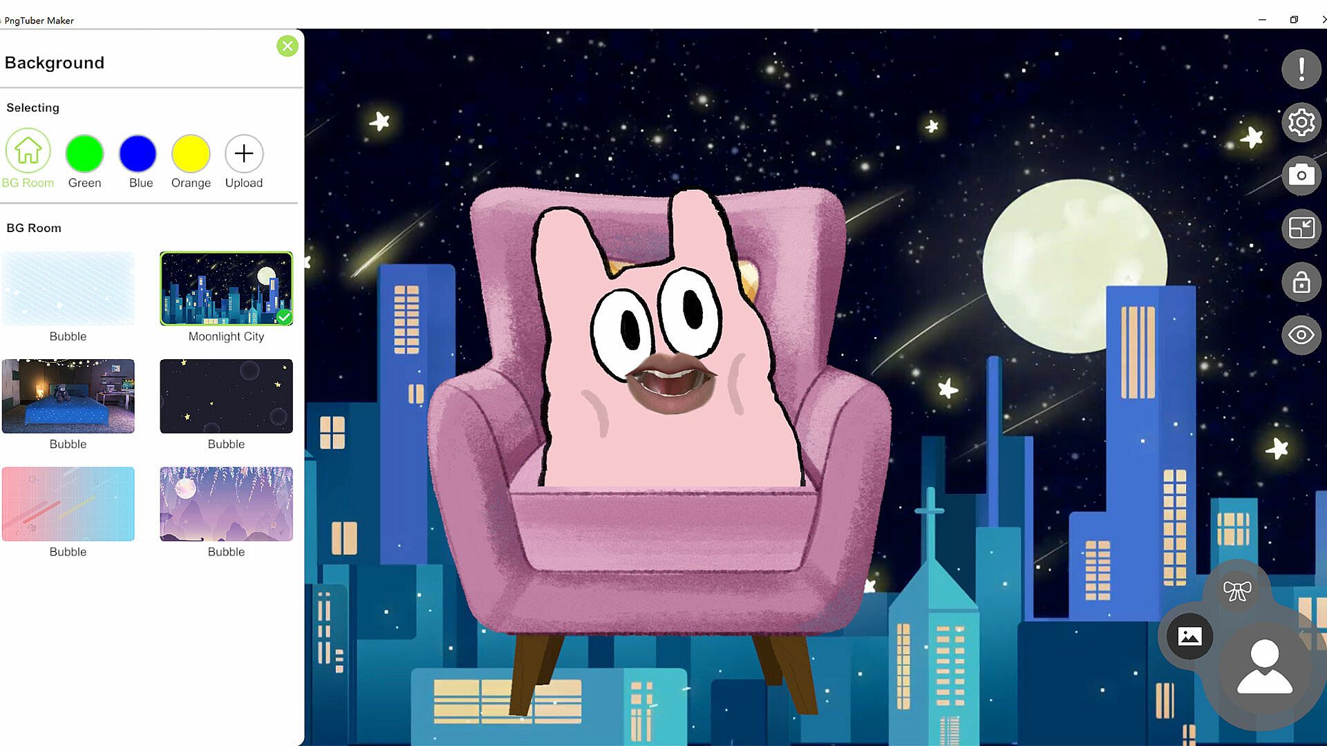 PngTuber Maker is a free pngtuber software that can help everyone become pngtuber with few easy steps. You can make a pngtuber avatar by uploading several PNG format pictures of avatar emotions, and PngTuber Maker will detect the surrounding sounds to switch different emotion picture, it makes the virtual avatar is talking. We also provide other features, such as backgrounds, avatar accessories, switching animation, virtual camera, desktop mascot etc.We use sound detection technology to control the opening or closing of the avatar's mouth. You can also try our 3D vtuber software developed by Yimeta