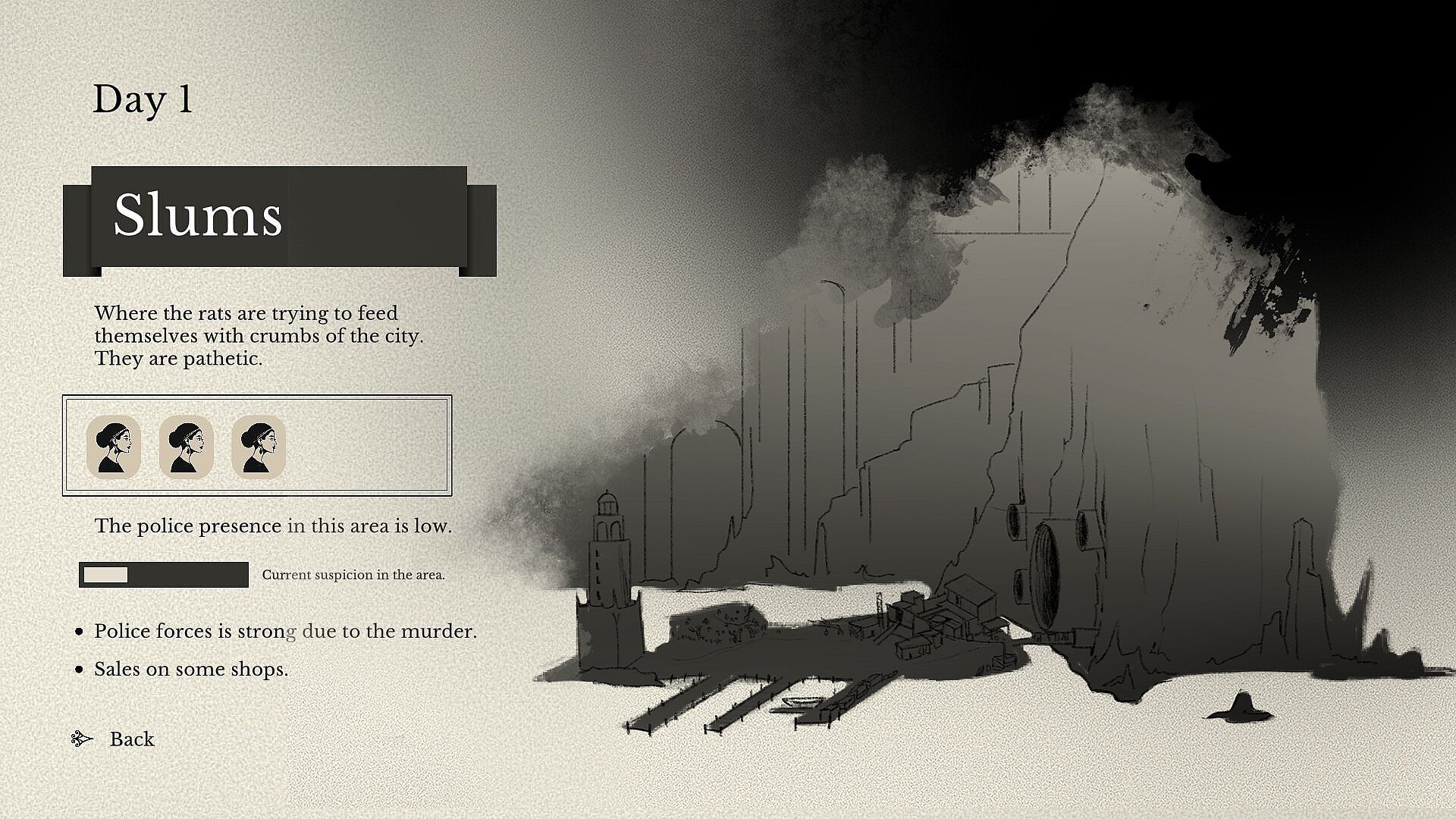 Every day is a test. You’ll roam the streets, deciding how to spend your limited energy: searching for scraps, picking pockets, pleading for coins, or speaking to locals who might offer help — for a price. From ruthless vendors to suspicious strangers, everyone in Veronka is looking out for themselves, and you're just one more soul trying to make it through.