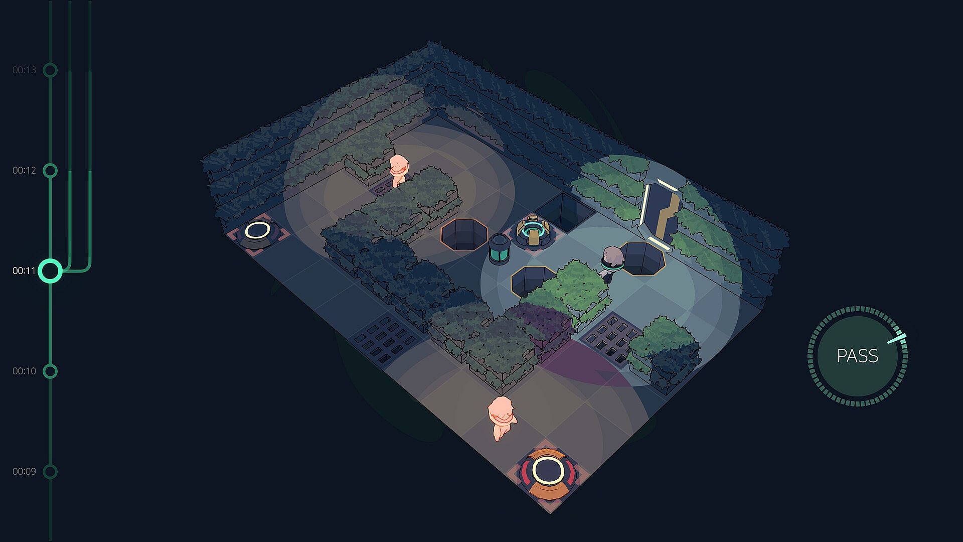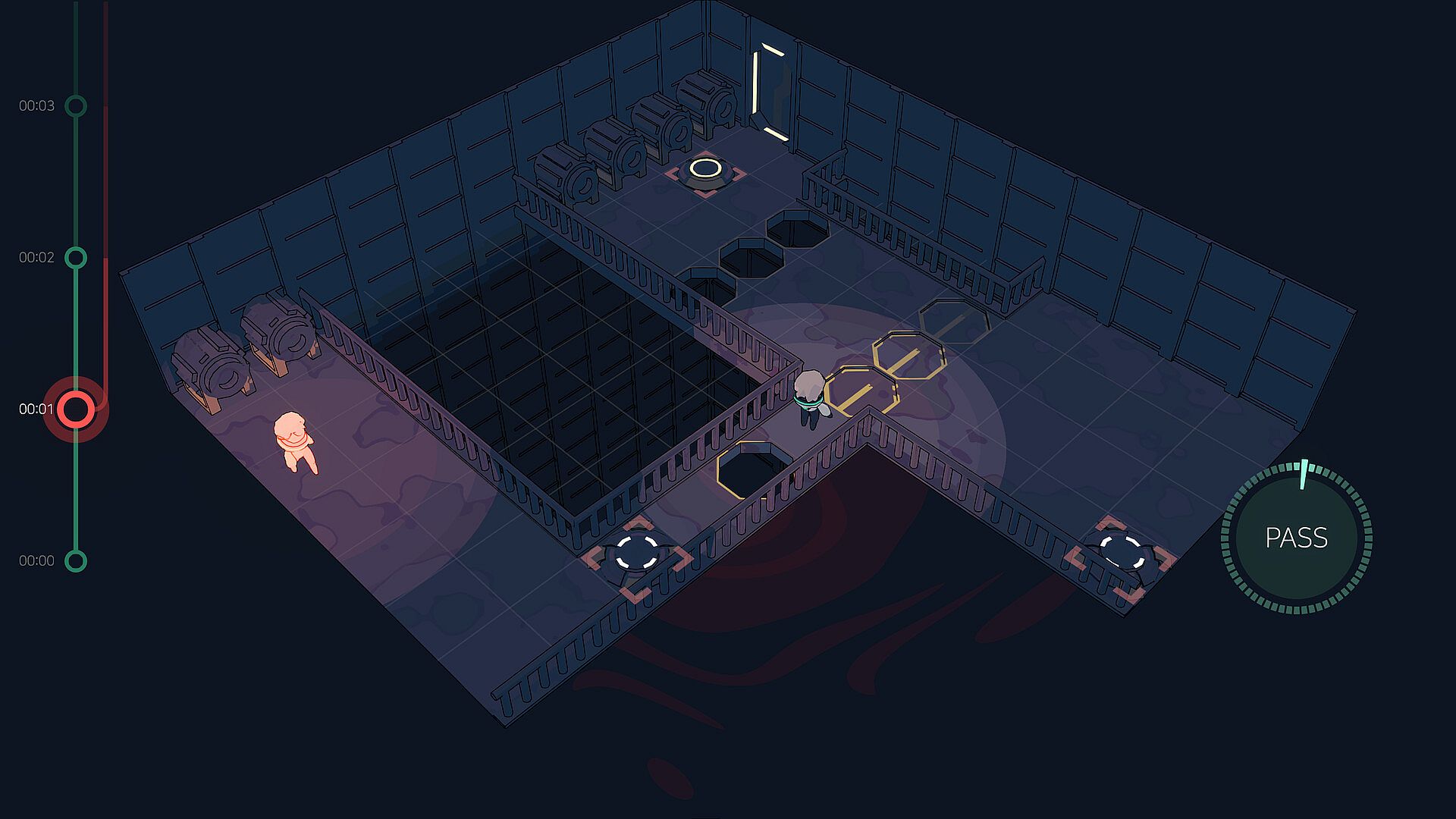 Point In Time is a grid-based puzzle game that uses time travel. Cooperate with your past self, who repeats your actions every second, to escape each room.