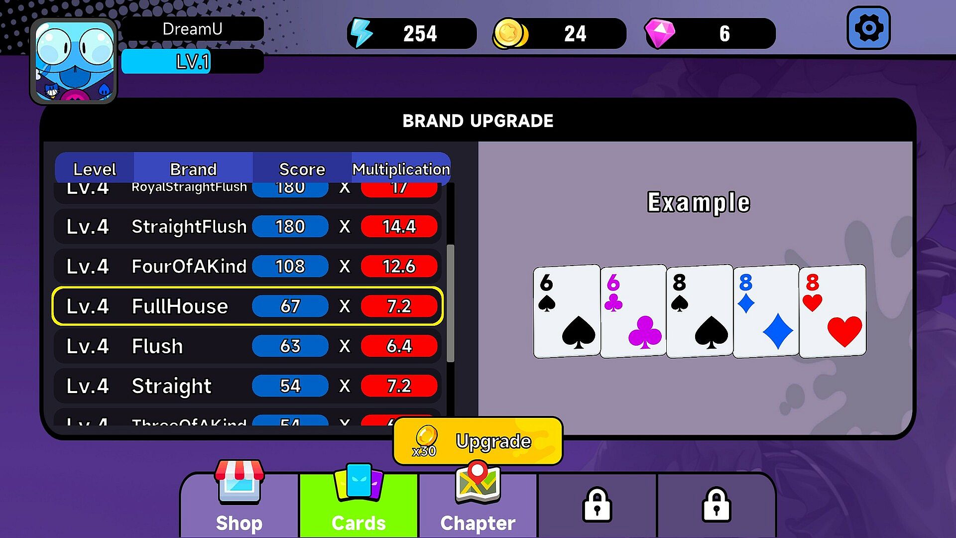 •  Built on Balatro's poker rules, combine classic hands like Straights and Flushes to deal massive damage and crush Guardians in each run. But here’s the new rules: embark on a rogue-lite adventure where your ultimate combos persist forever!​