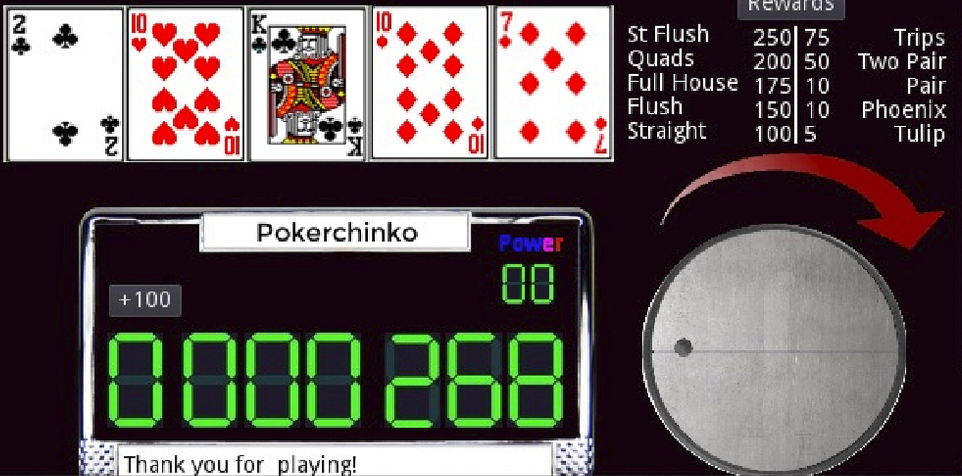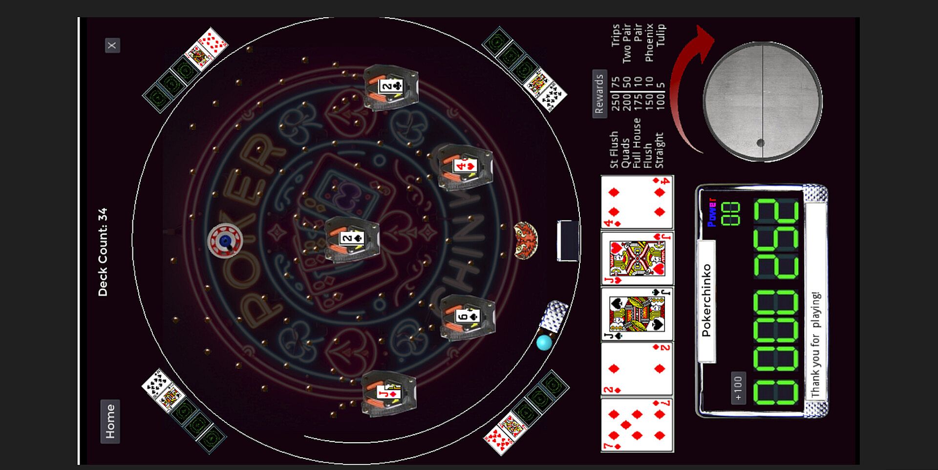 Pokerchinko is a pachinko game with the added mechanics of trying to make the best poker hand.
