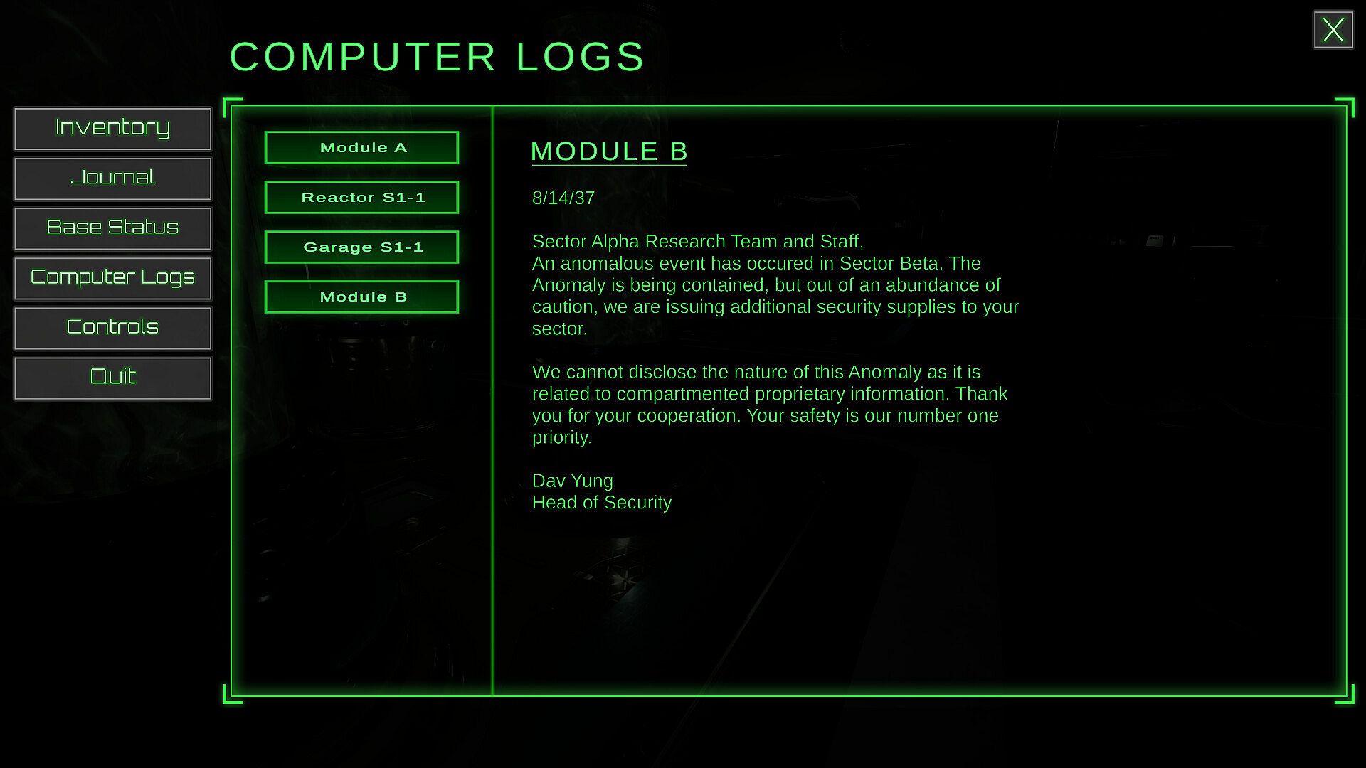 You find yourself alone on a remote research outpost in the Polaris system. Something has gone terribly wrong. Much of the base is lacking power and your co-workers are mysteriously missing. Your resources are dwindling, so you'll need to secure more food, water, and power, but this involves venturing away from the security of your home base. There are deadly threats lurking in this outpost and it will take all of your cunning to keep from becoming another victim. Equipped with various items to track, deter, and trick your adversaries, there is a chance you can outwit your opponents. However, you'll need to keep a close eye on your stats, as it's all too easy to get dehydrated or lose your sanity to the extreme stress of these circumstances.
