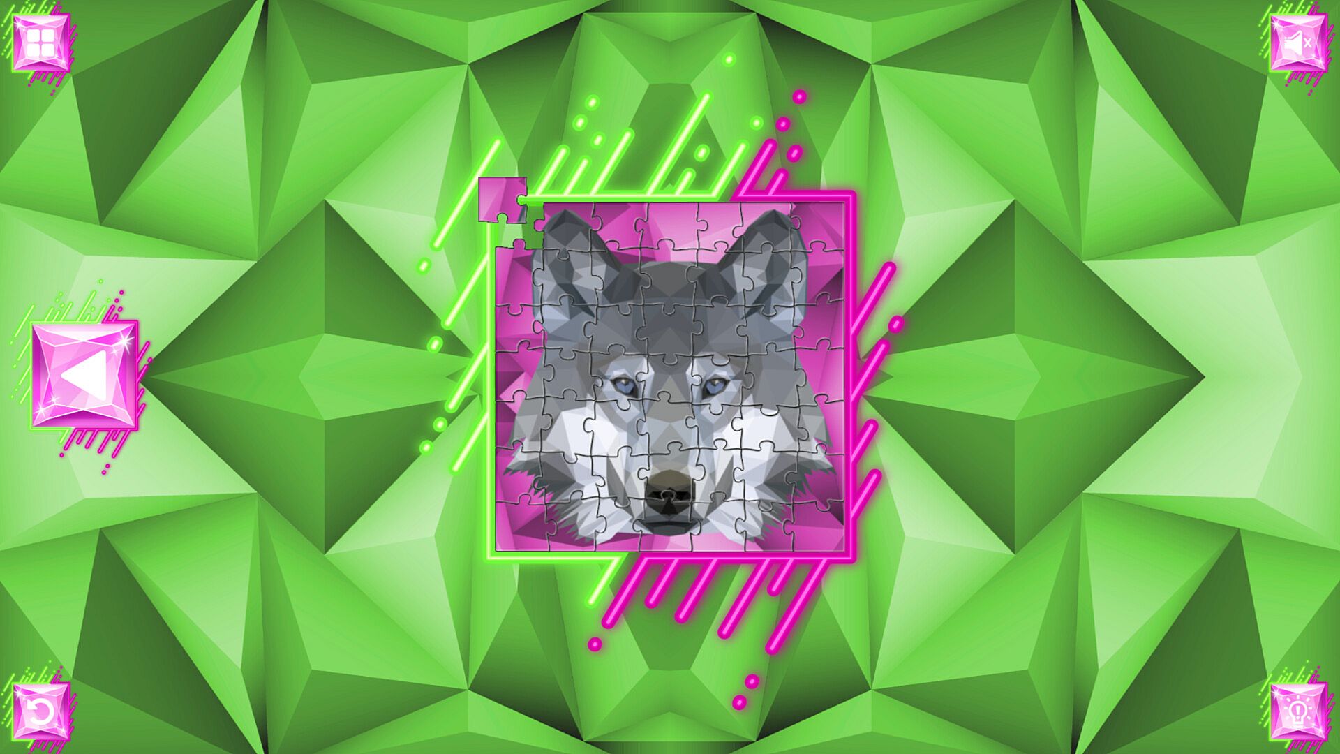 Featuring 50 hand drawn images in a polygonal style, with each puzzle piece uniquely shaped in a way no physical puzzle could be.