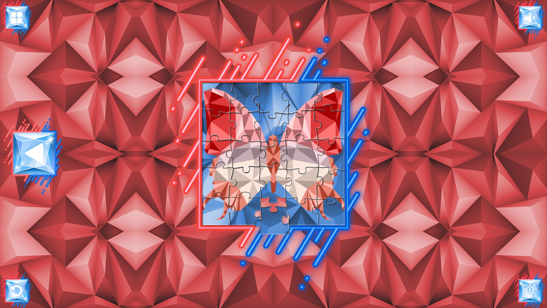 Featuring 50 hand drawn images in a polygonal style, with each puzzle piece uniquely shaped in a way no physical puzzle could be.