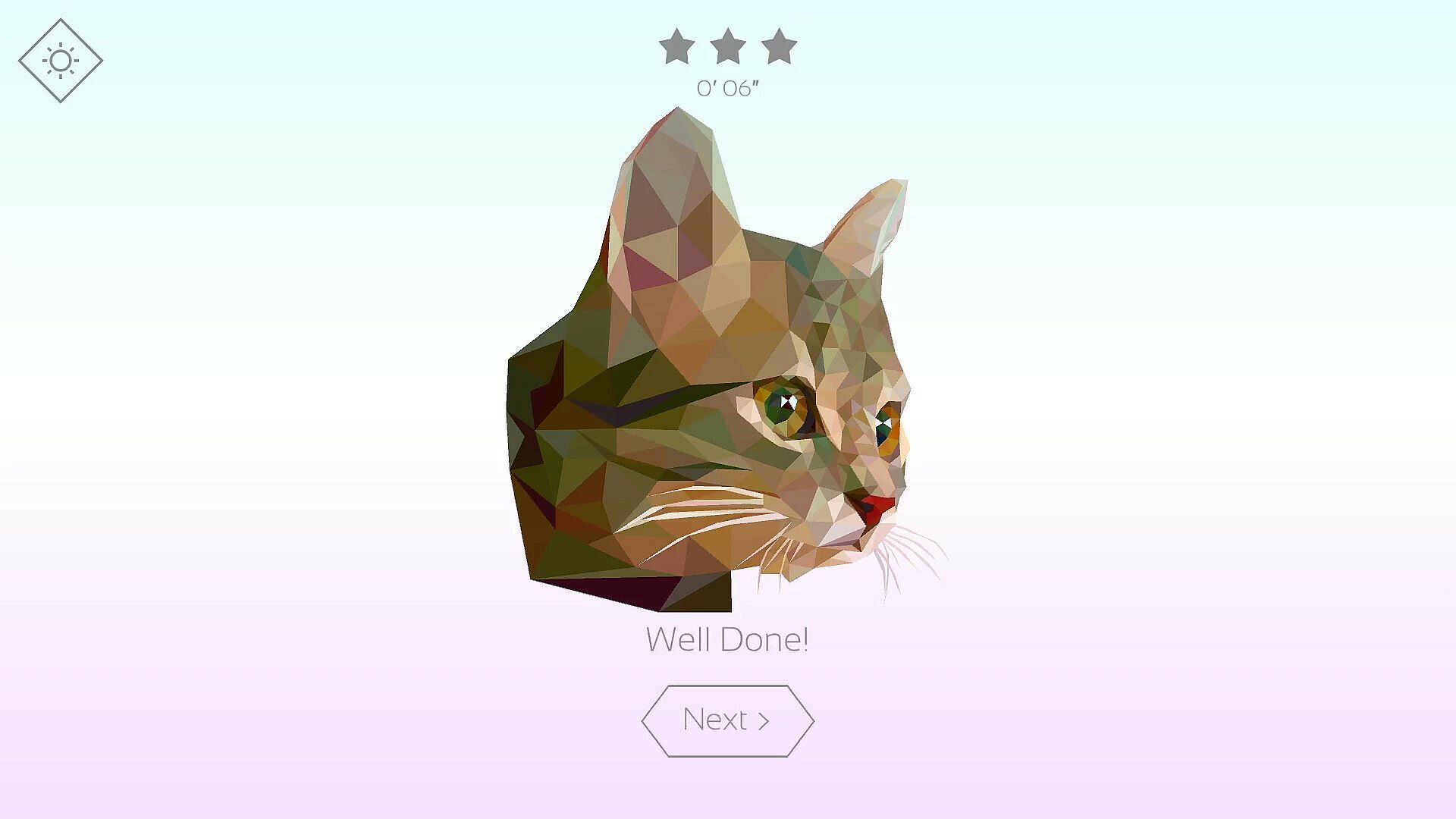 A simple puzzle game in which you restore colourful pictures that have been shattered into clusters of triangles.