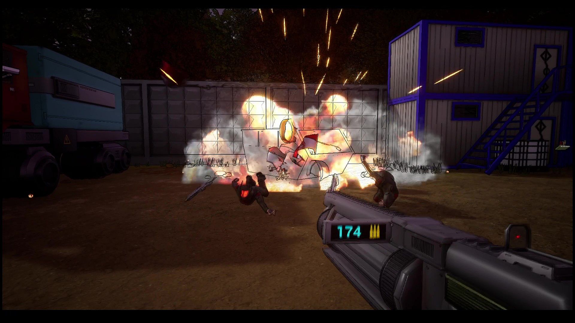 - A variety of locations and game scenarios - first you are shooting soldiers from 3 guns at the same time, and then the floor turns into lava and a huge duck burns you with a laser from its eyes